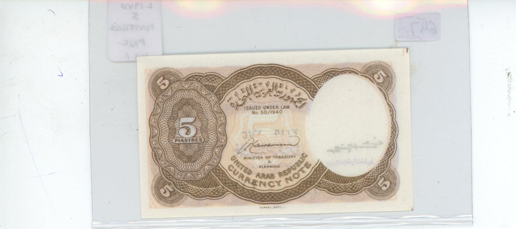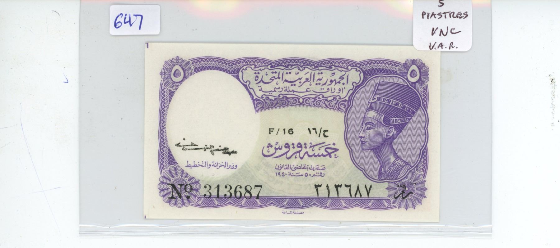 Egypt. United Arab Republic. L1940 5 Piastres. Queen Nefertiti. Uncirculated.