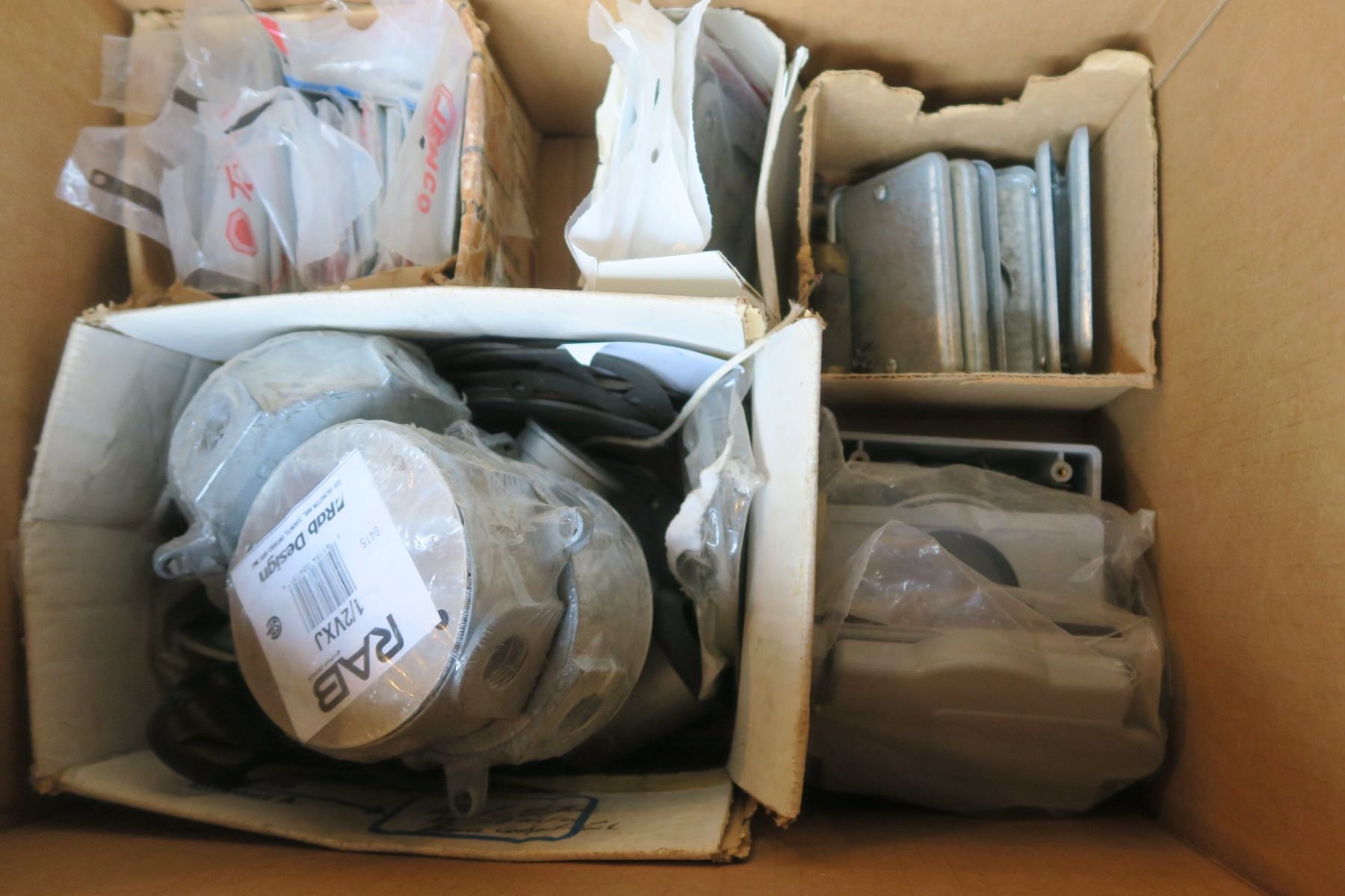 2x PVC Deep Boxes W/ Covers, RAB Boxes. Handy Box Blank Covers & Device Covers