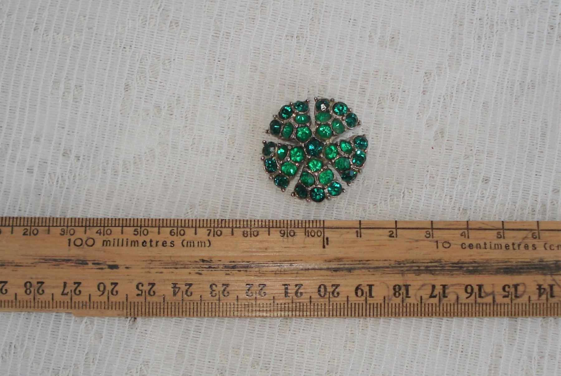 Emerald Green coloured brooch pring set glass stones