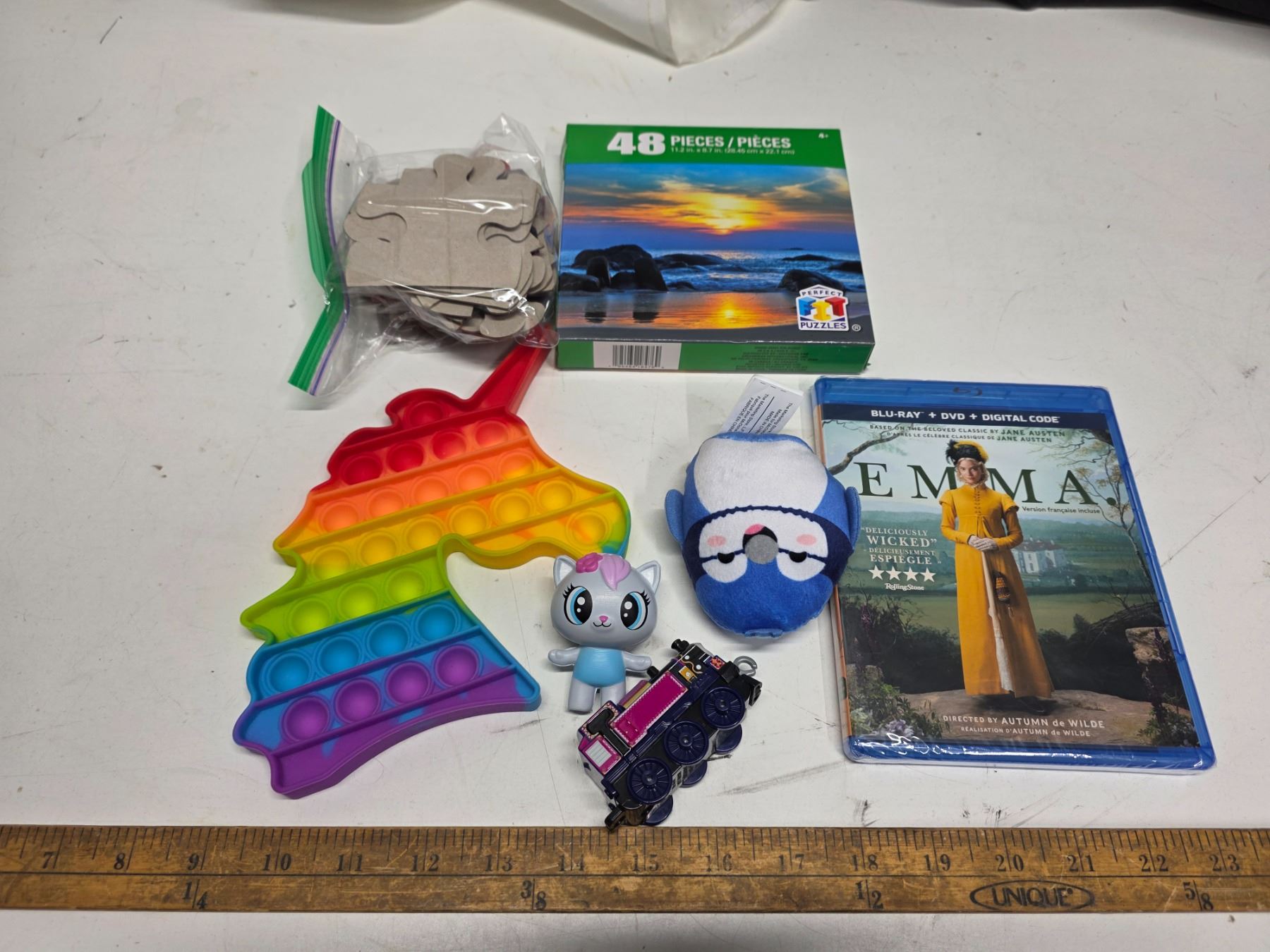 Emma movie with kids toys and popet