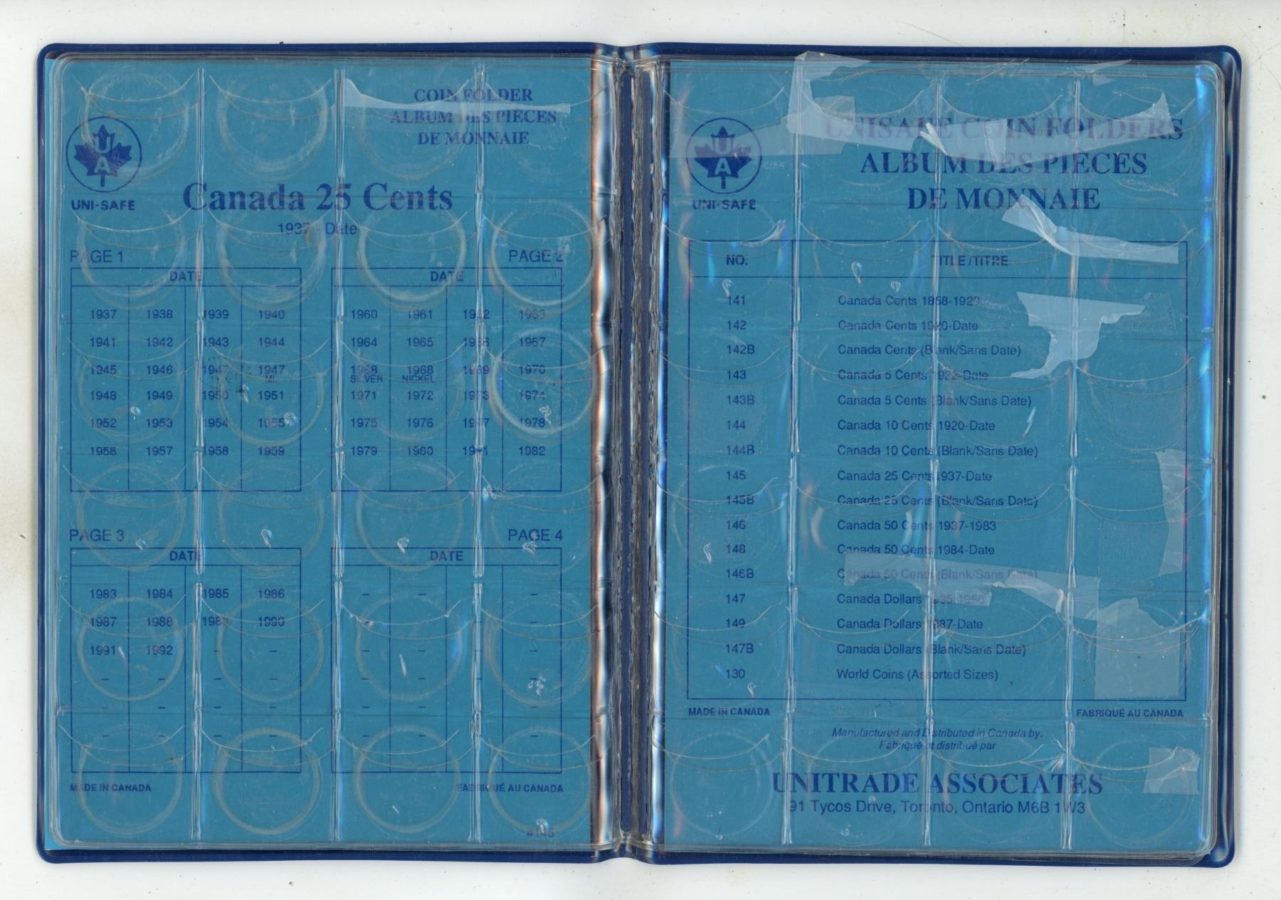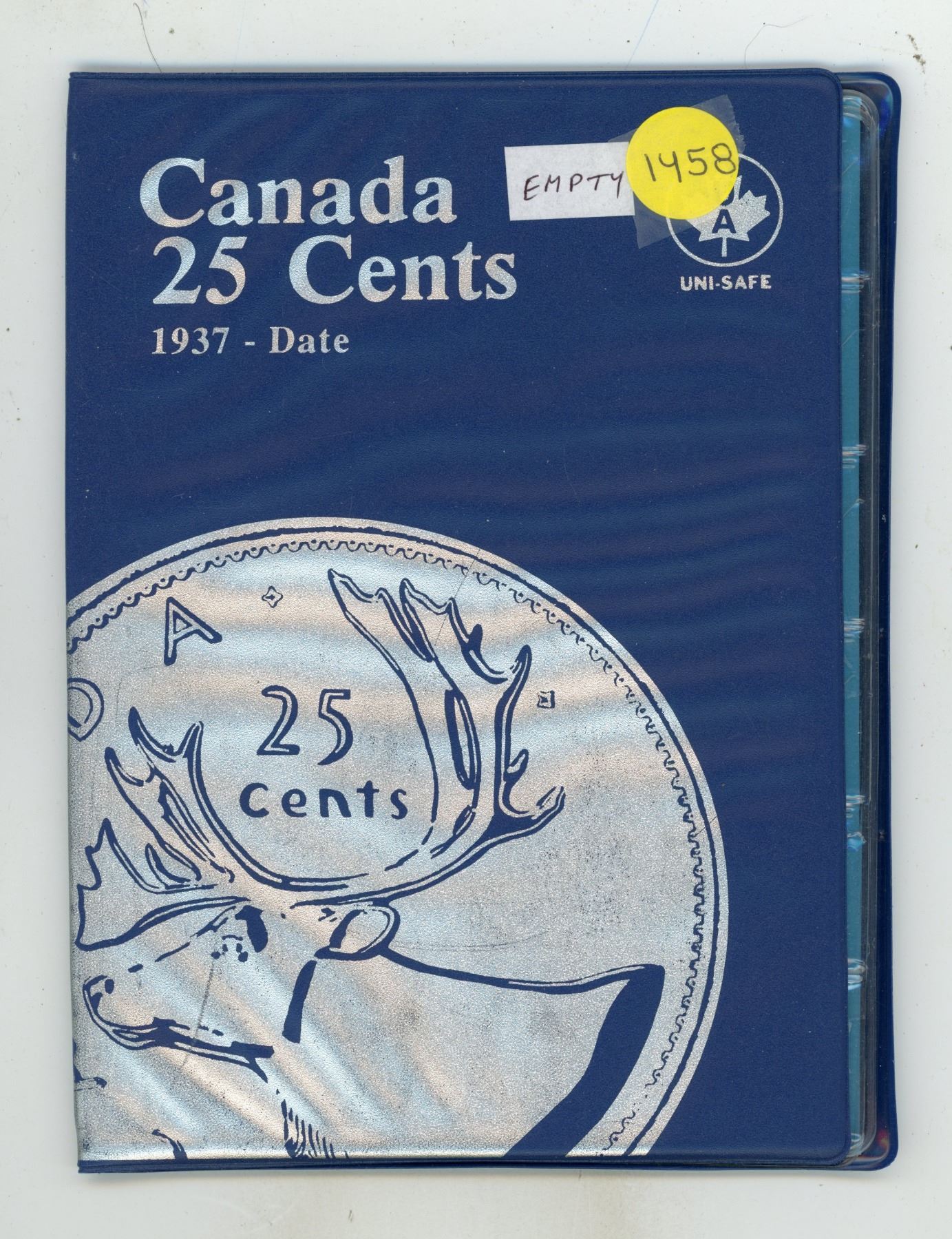 Empty Canadian 25 Cents folder. Uni-Safe. Used.