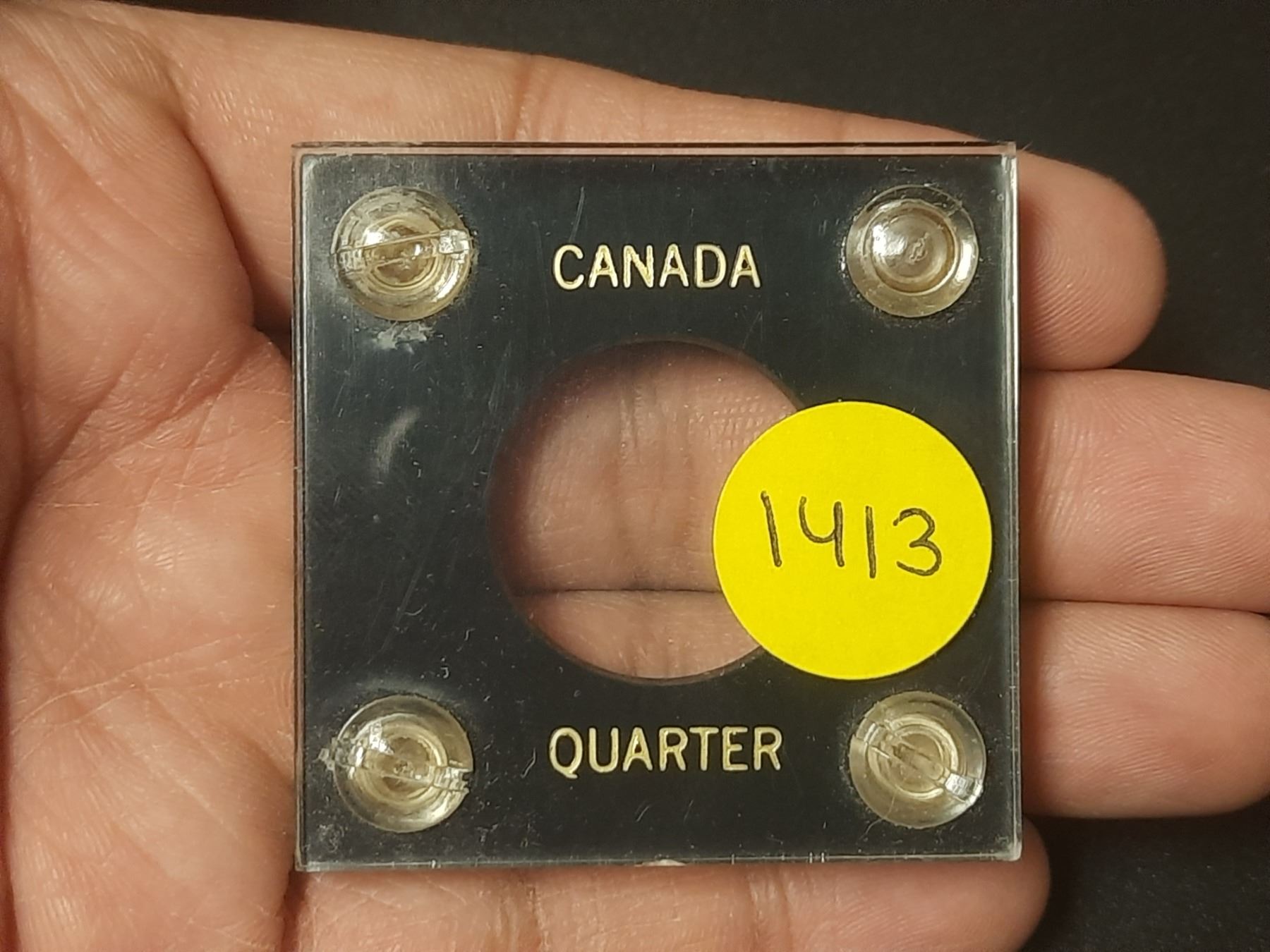 Empty Hard Plastic Holder for a Canadian 25 Cents. Used.