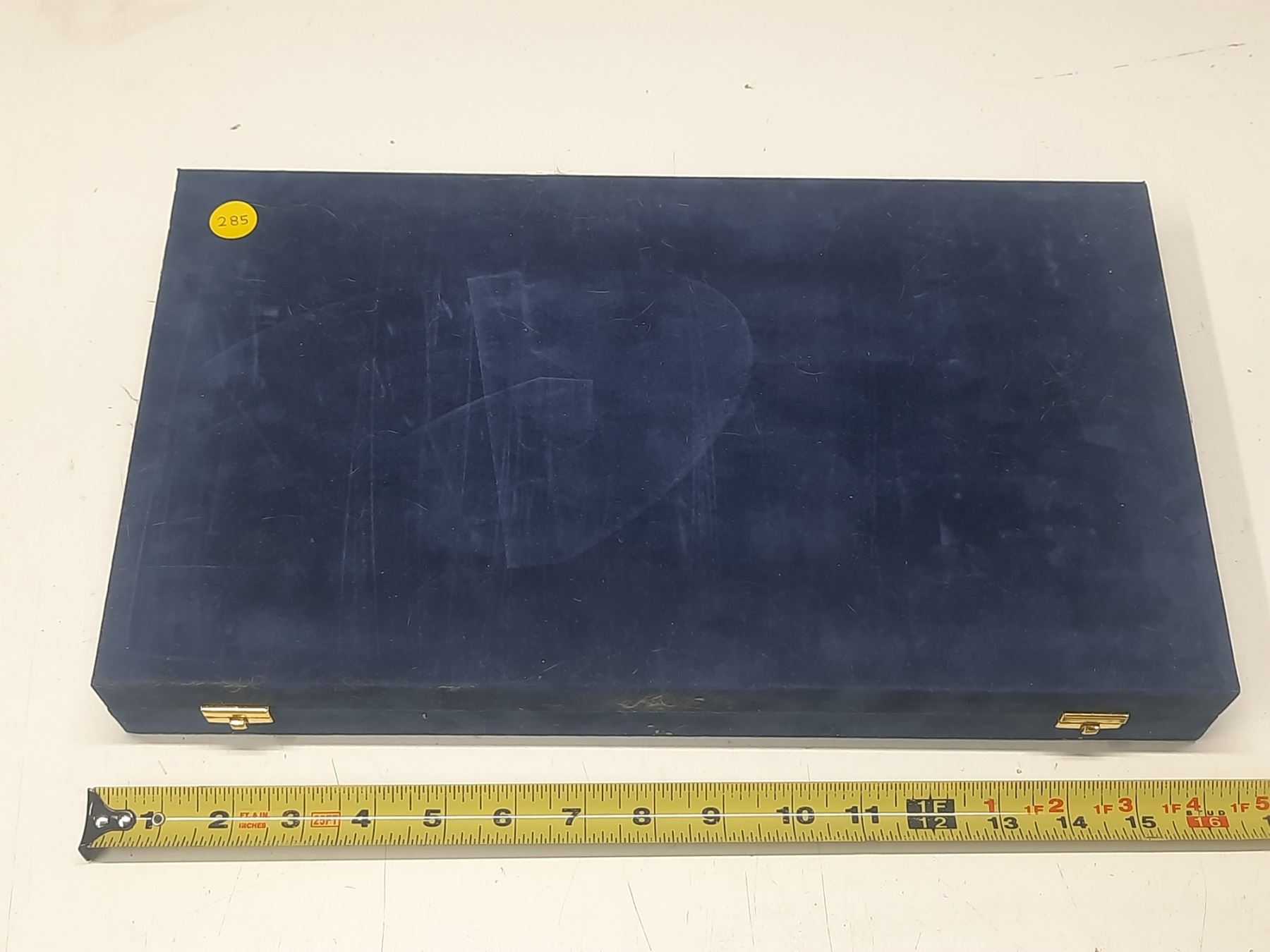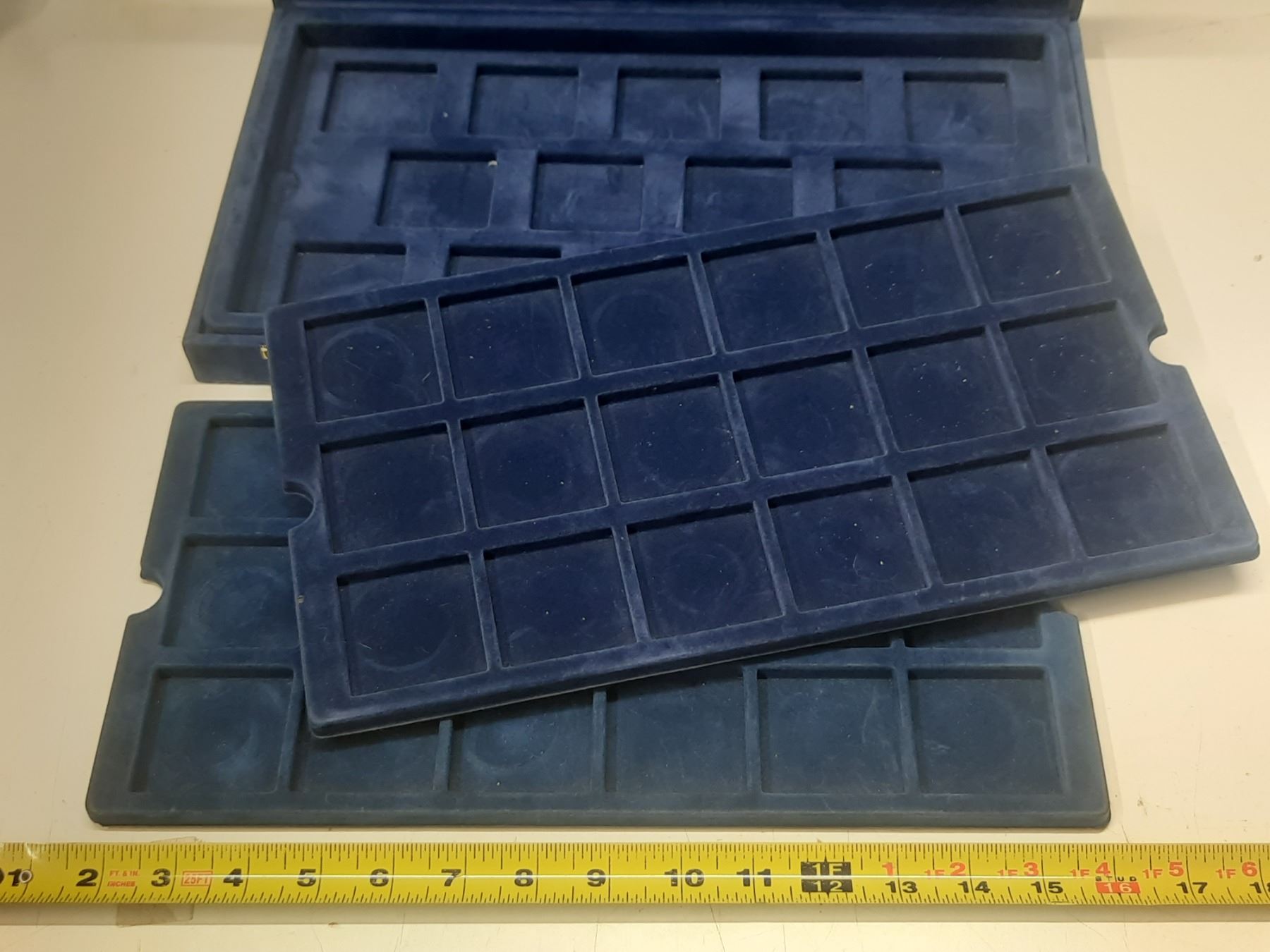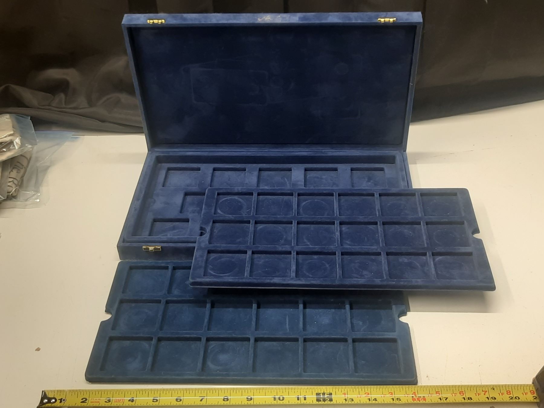 Empty plush case for housing 50 large coins. Includes 2 removable trays. Used.