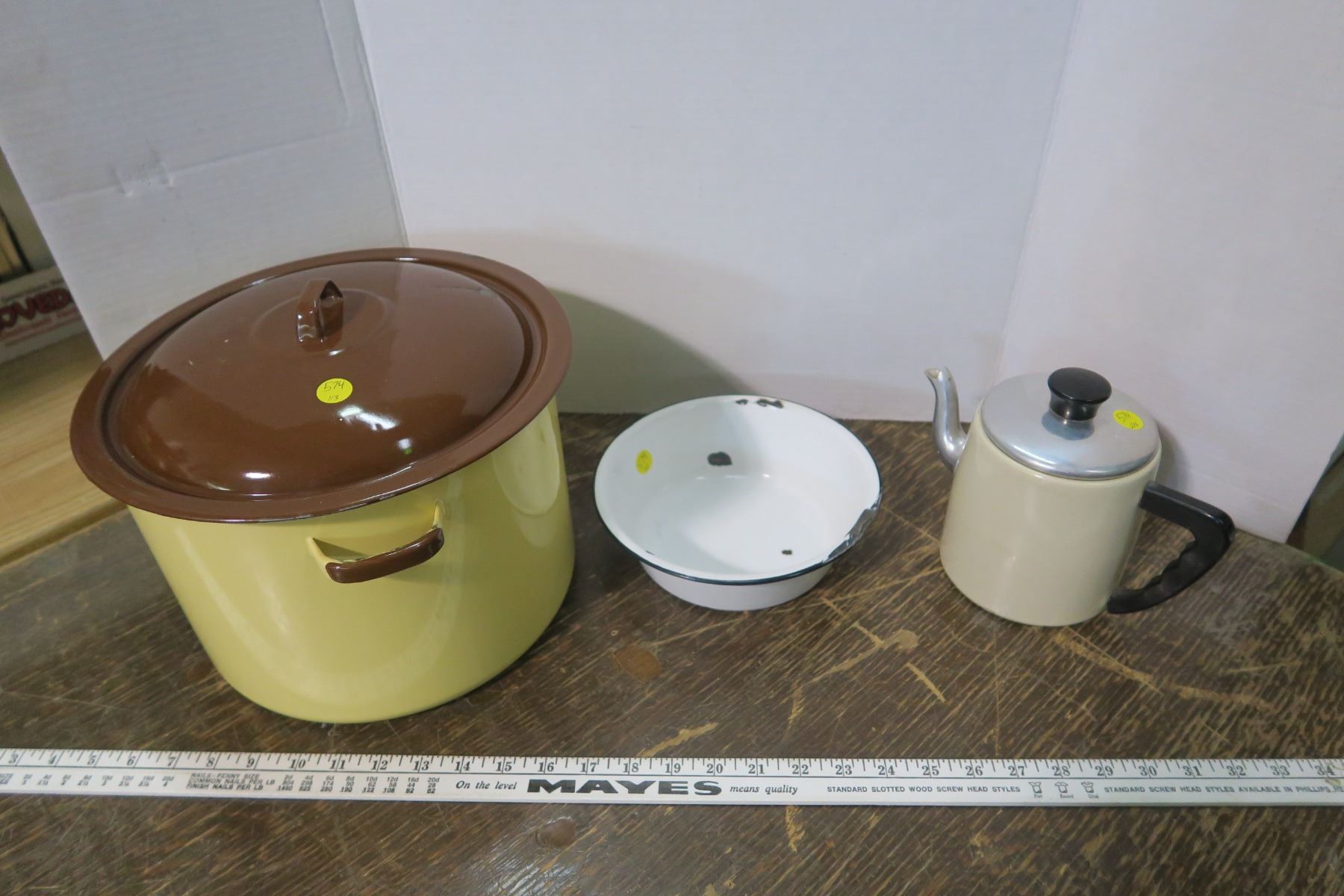 Enamel Lot - Pot w/ Lid, Bowl, Carafe