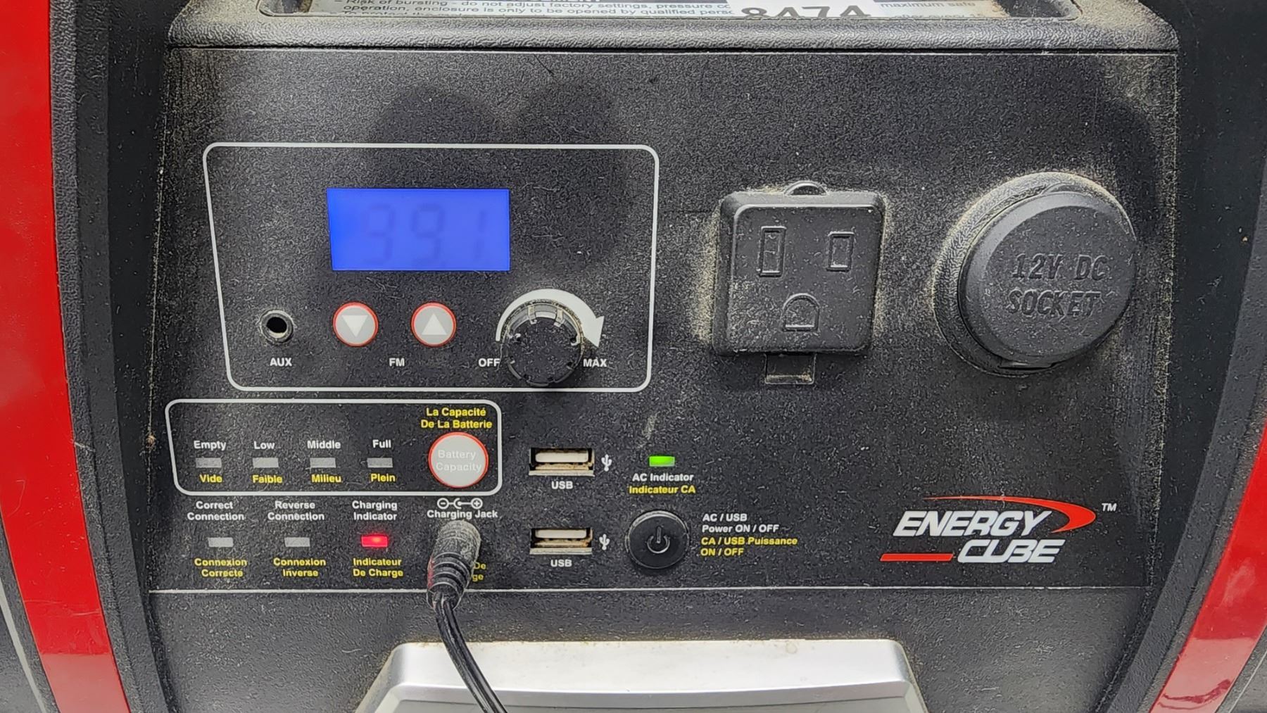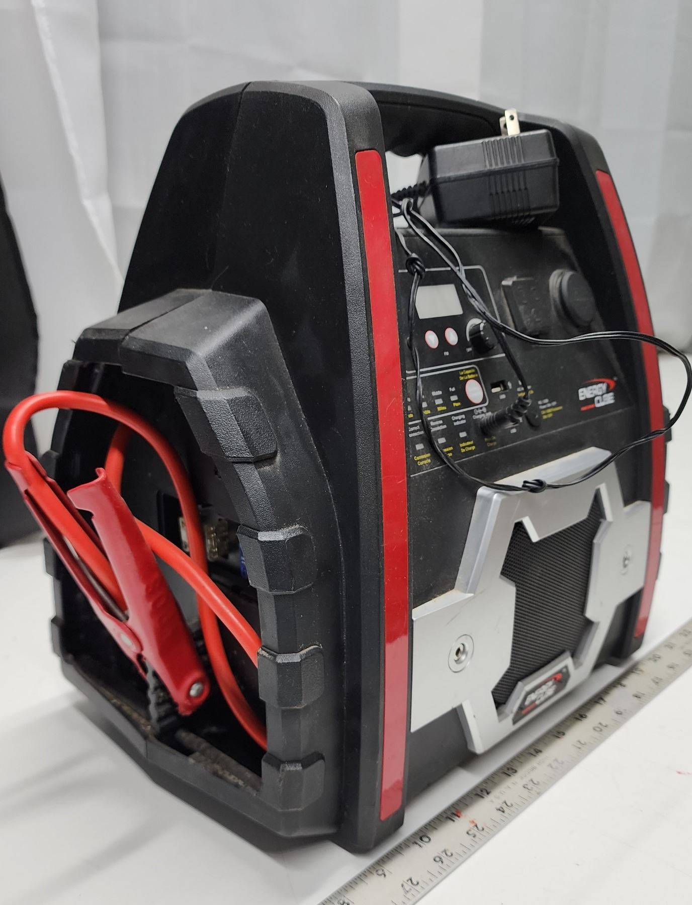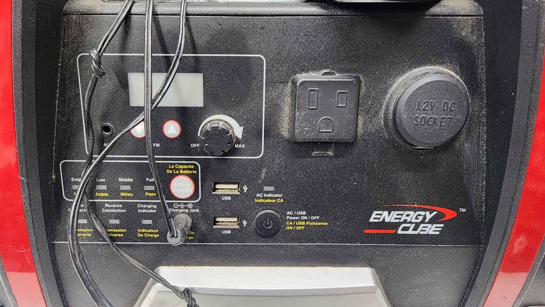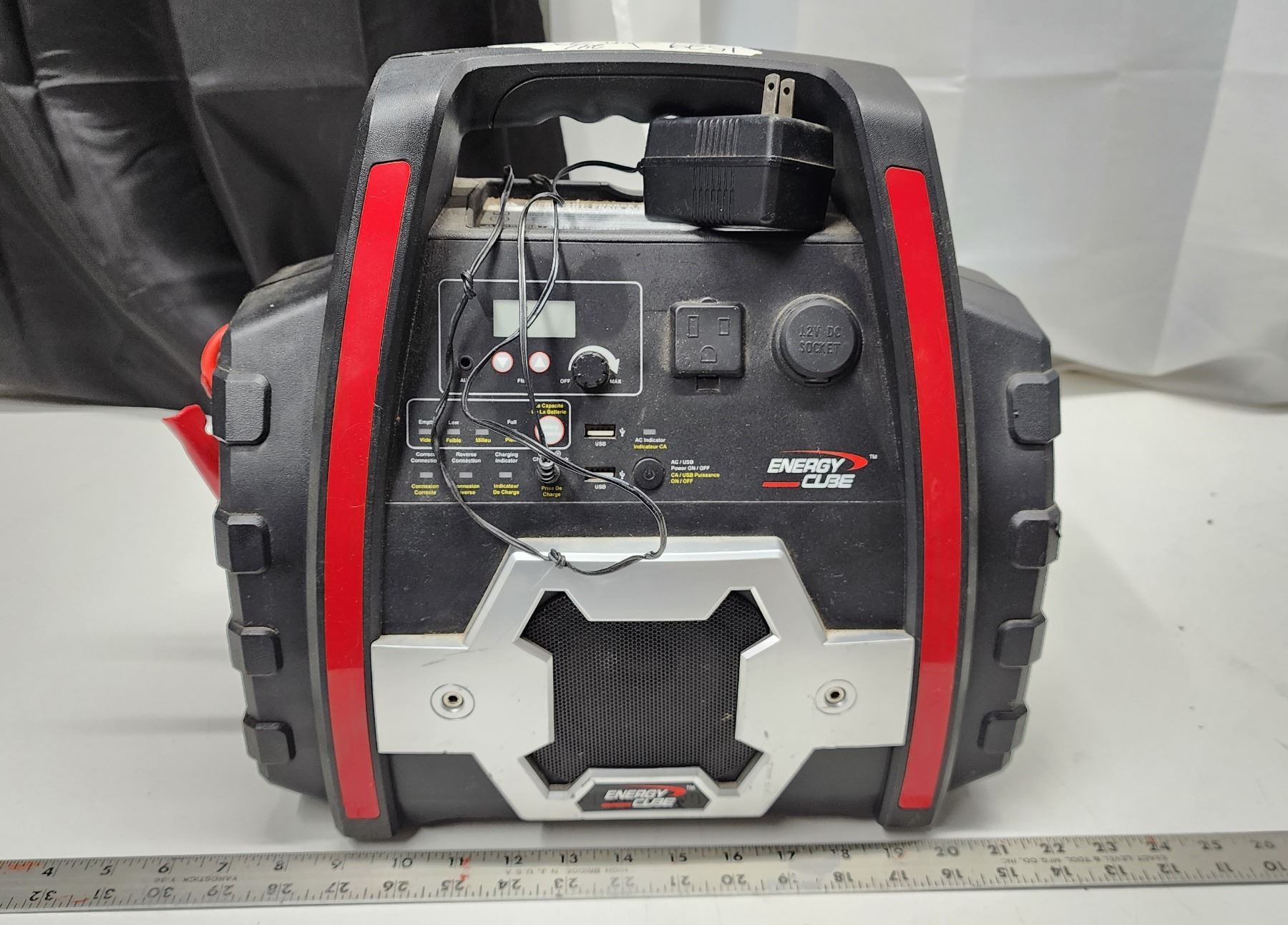"Energy Cube" portable battery - Radio, booster cables, air pump, usb ports - powers on, untested if