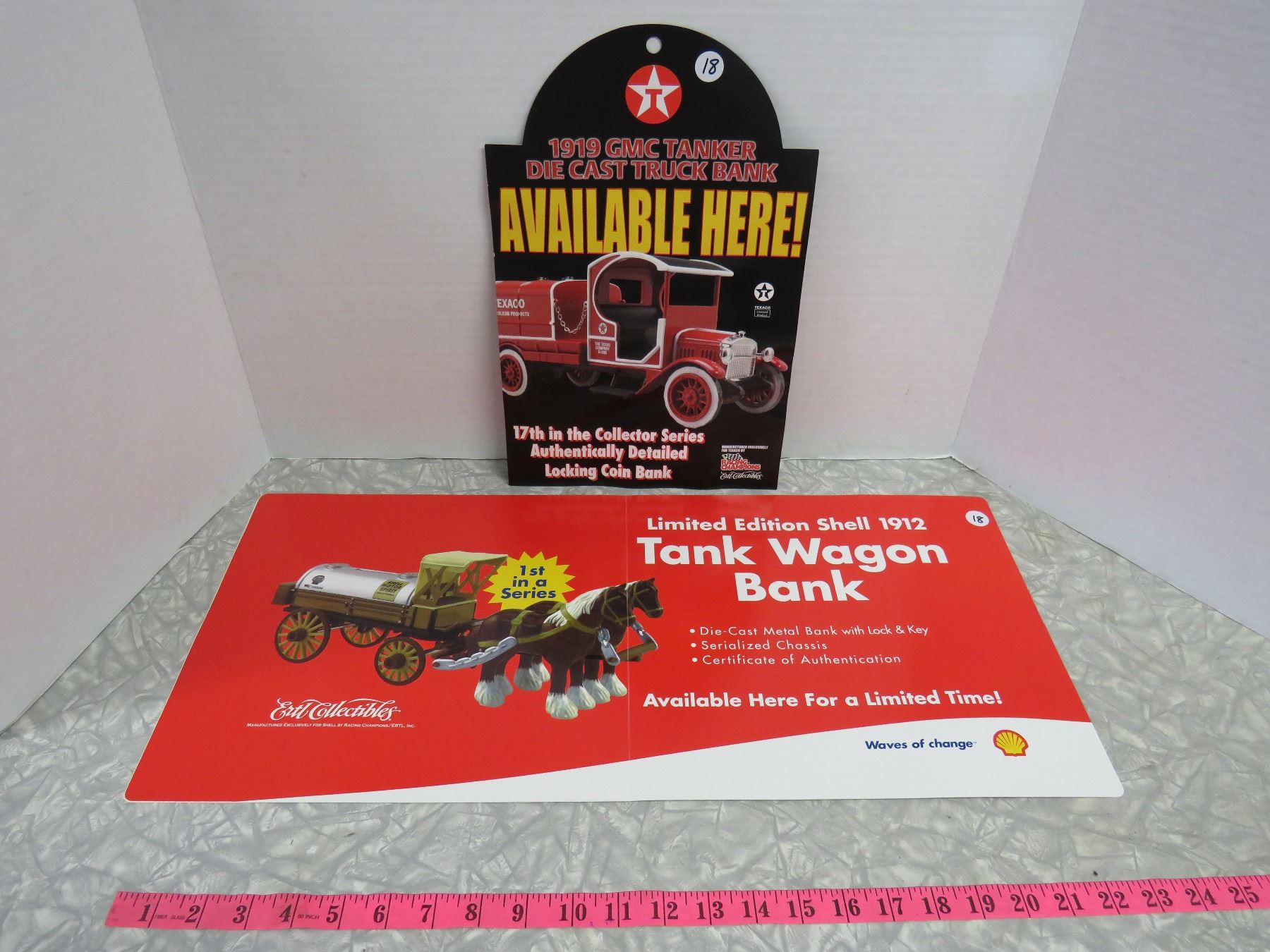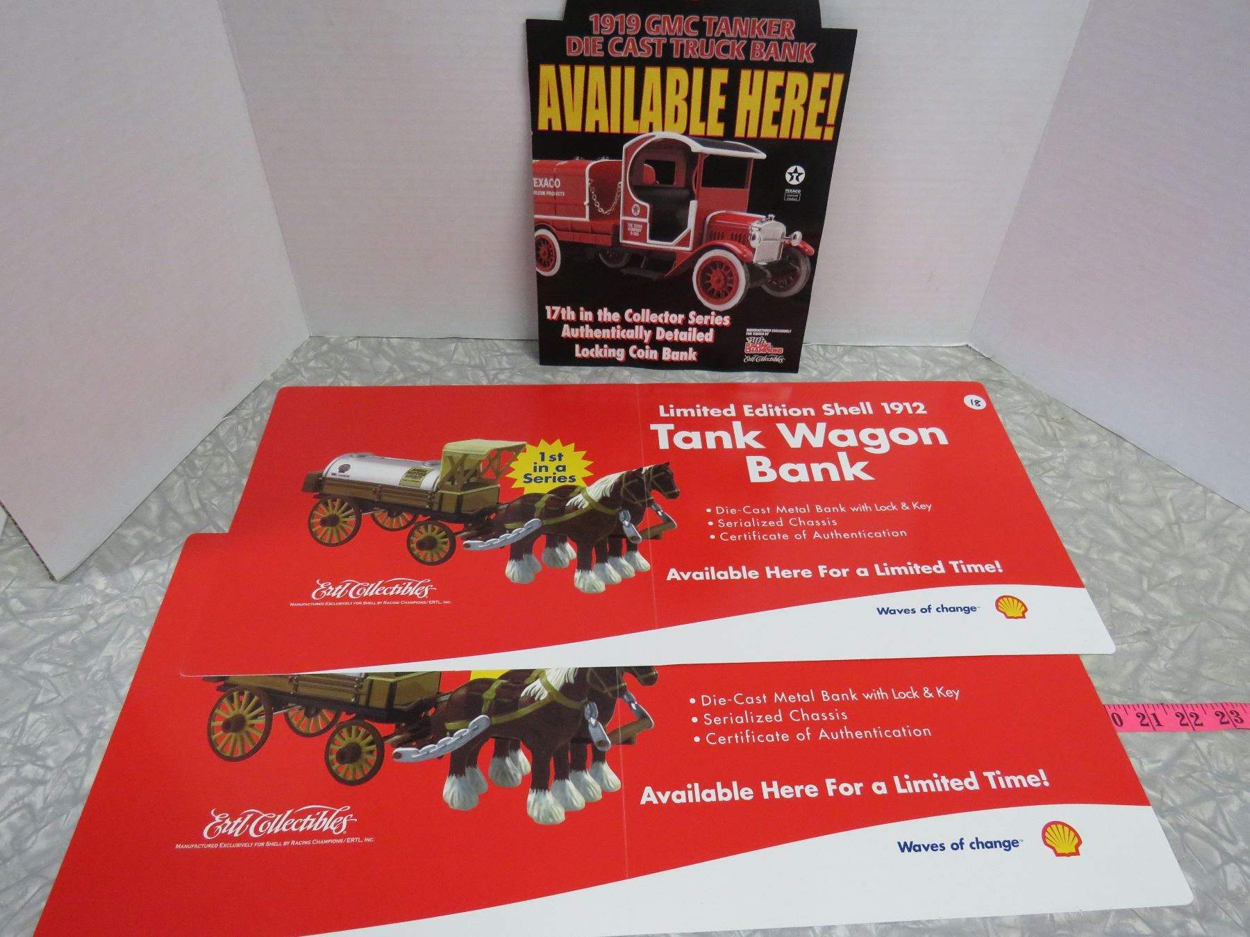 Ertl Collectible Advertising Signs (3)-9x14-GMC Tanker 24.5x11 Shell tank Wagon(2)-Vinyl