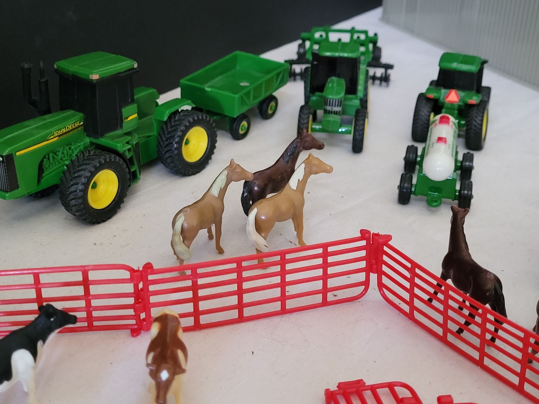 Ertl John Deere Farm. Buildings, fences, animals & metal machinery toys.