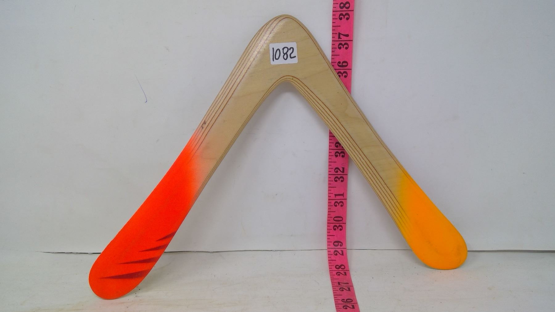 Google: “Everest” boomerang by Colorado boomerangs.' For a right-handed person. Width: 14". Material: Aircraft Baltic birch laminate. Made in 1996. Range: 40m. Novice boomerang. Returns: yes.