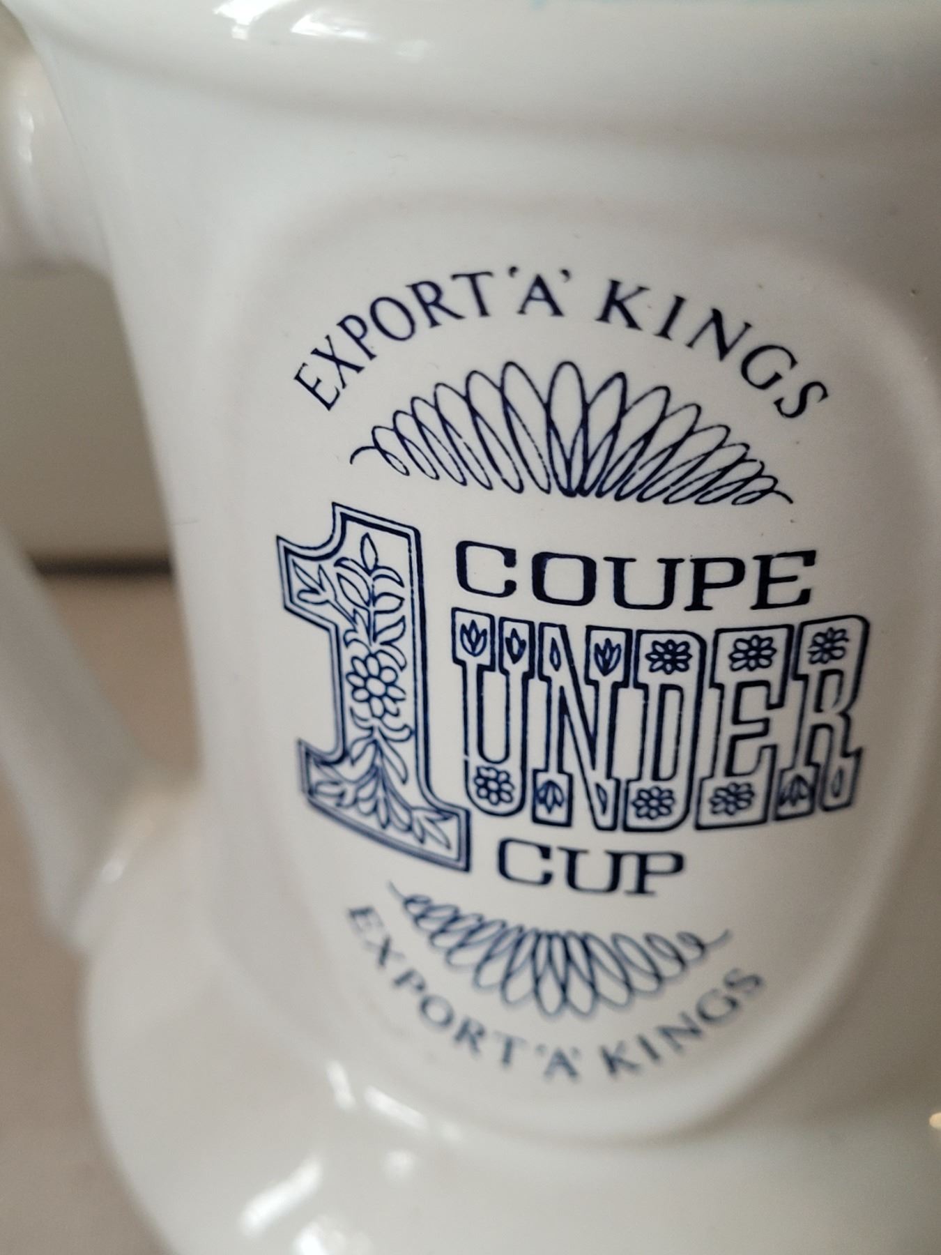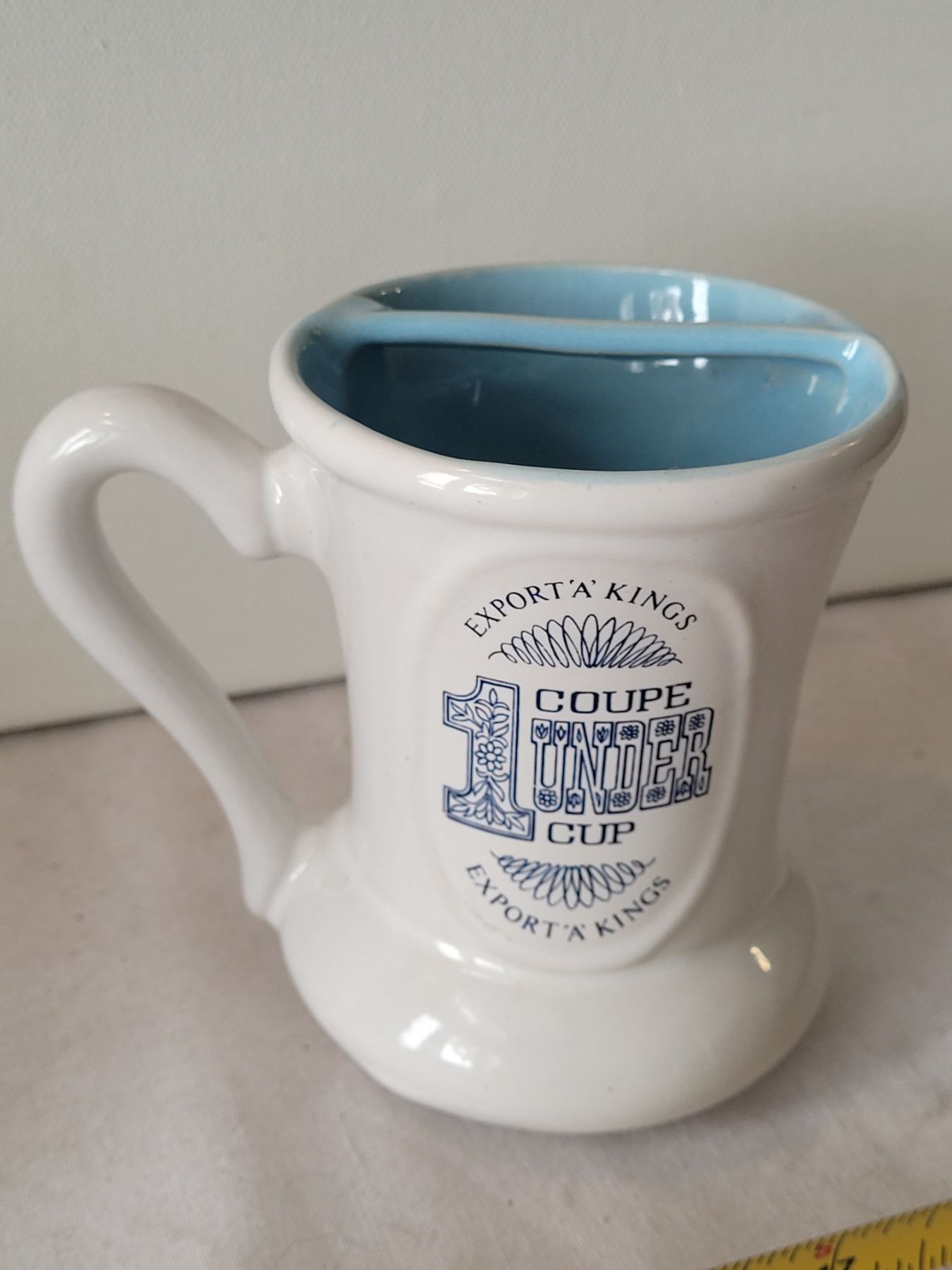Export A collectibles. Moustache mug. 1950-'70's survivor of time. Beauceware Potteries, Quebec. Makers mark on bottom.
