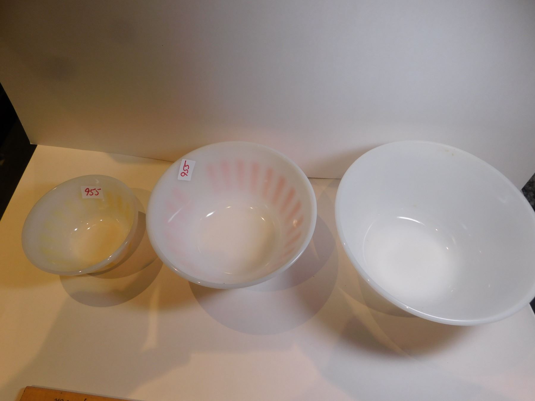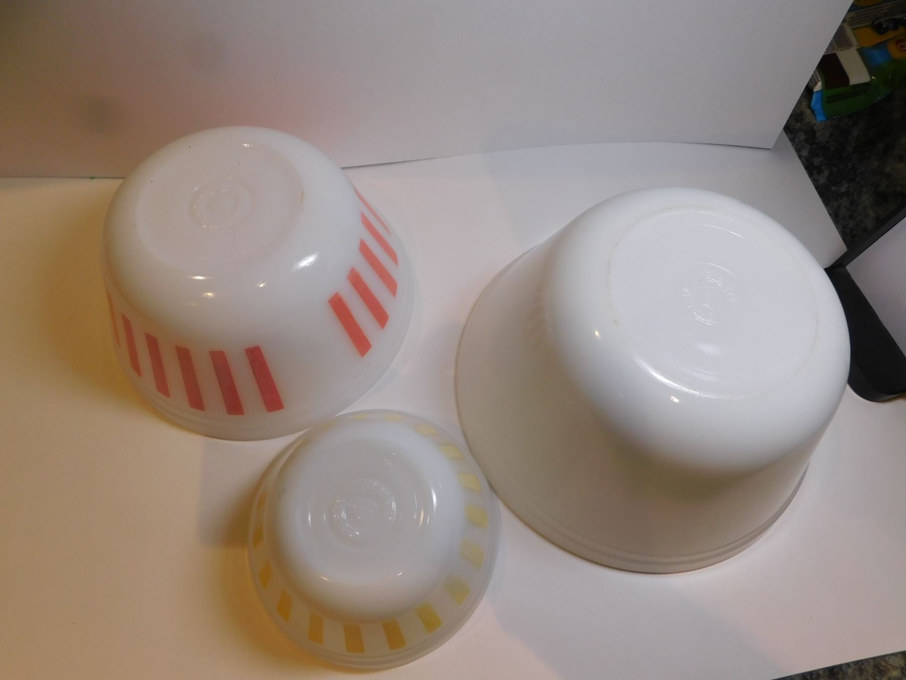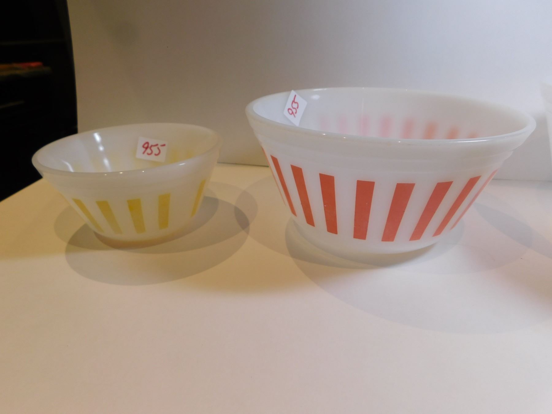 FEDERAL GLASS RED, YELLOW AND NO STRIPE SERVING BOWLS