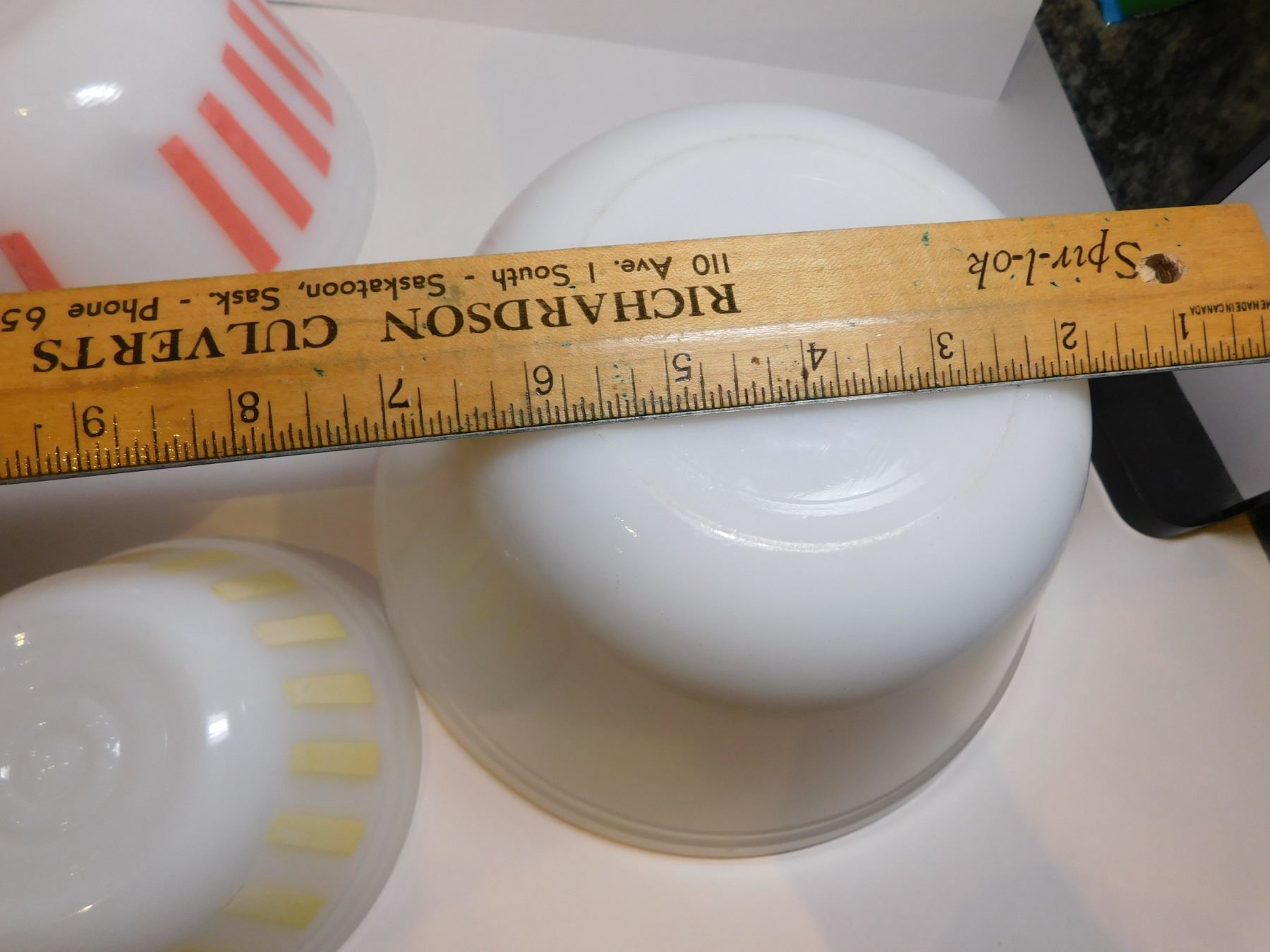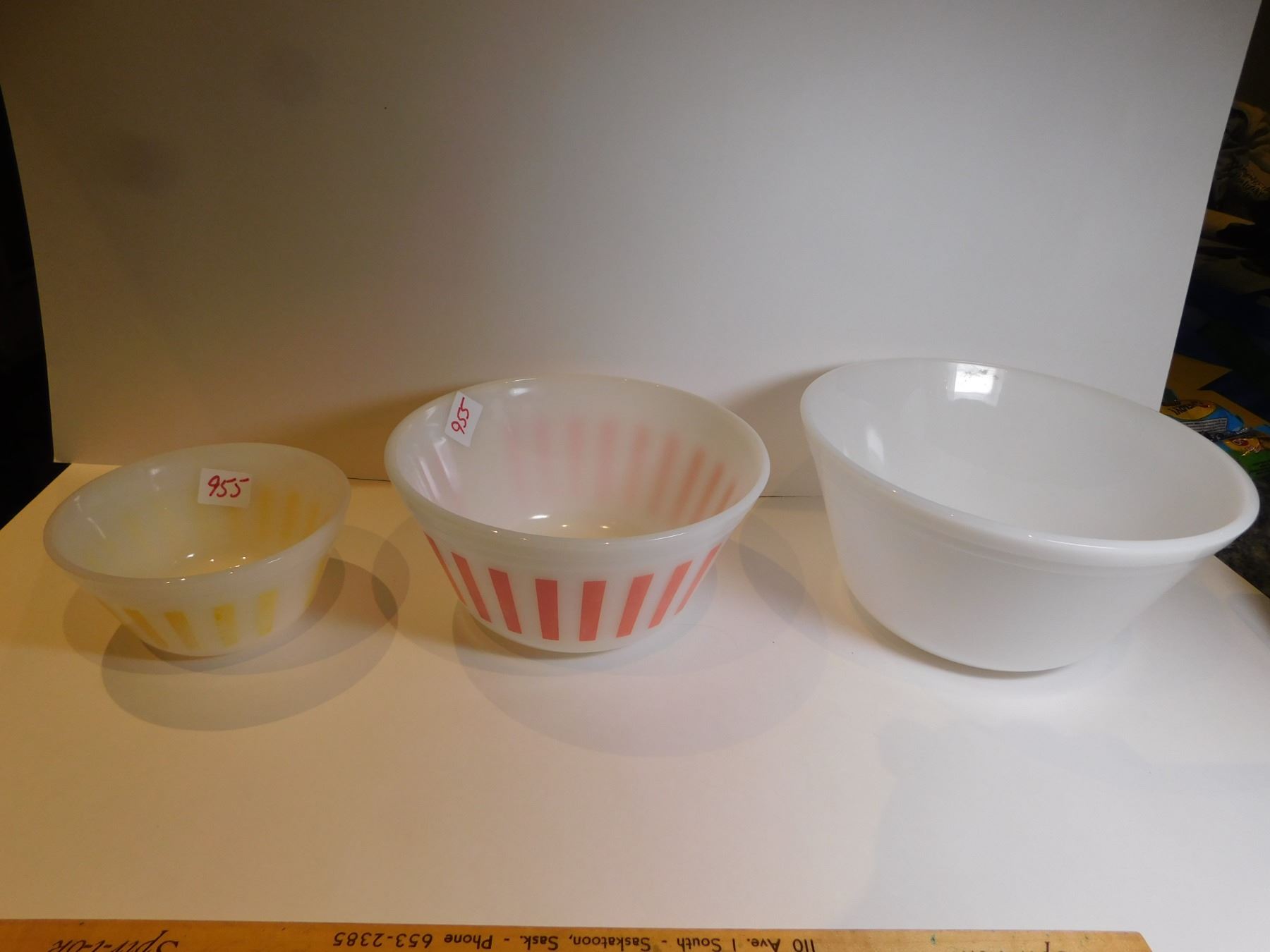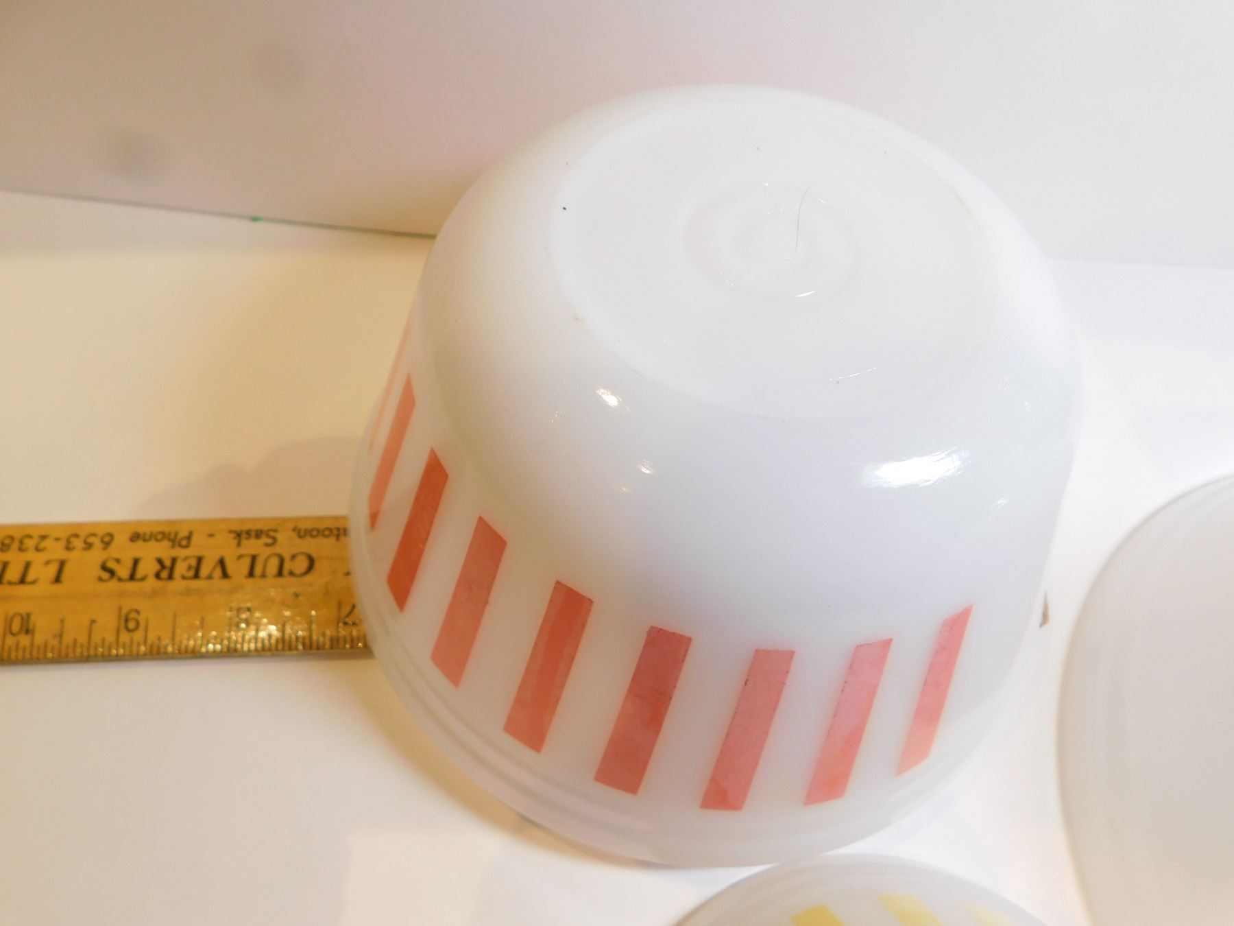 FEDERAL GLASS RED, YELLOW AND NO STRIPE SERVING BOWLS