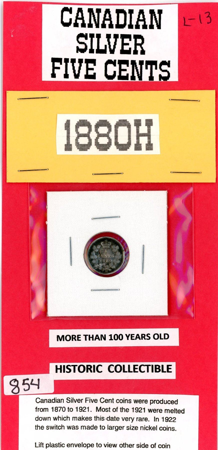 FIVE CENT COIN (CANADA) *1880H* (SILVER)