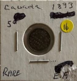 FIVE CENT COIN (CANADA) *1893 SMALL SILVER*