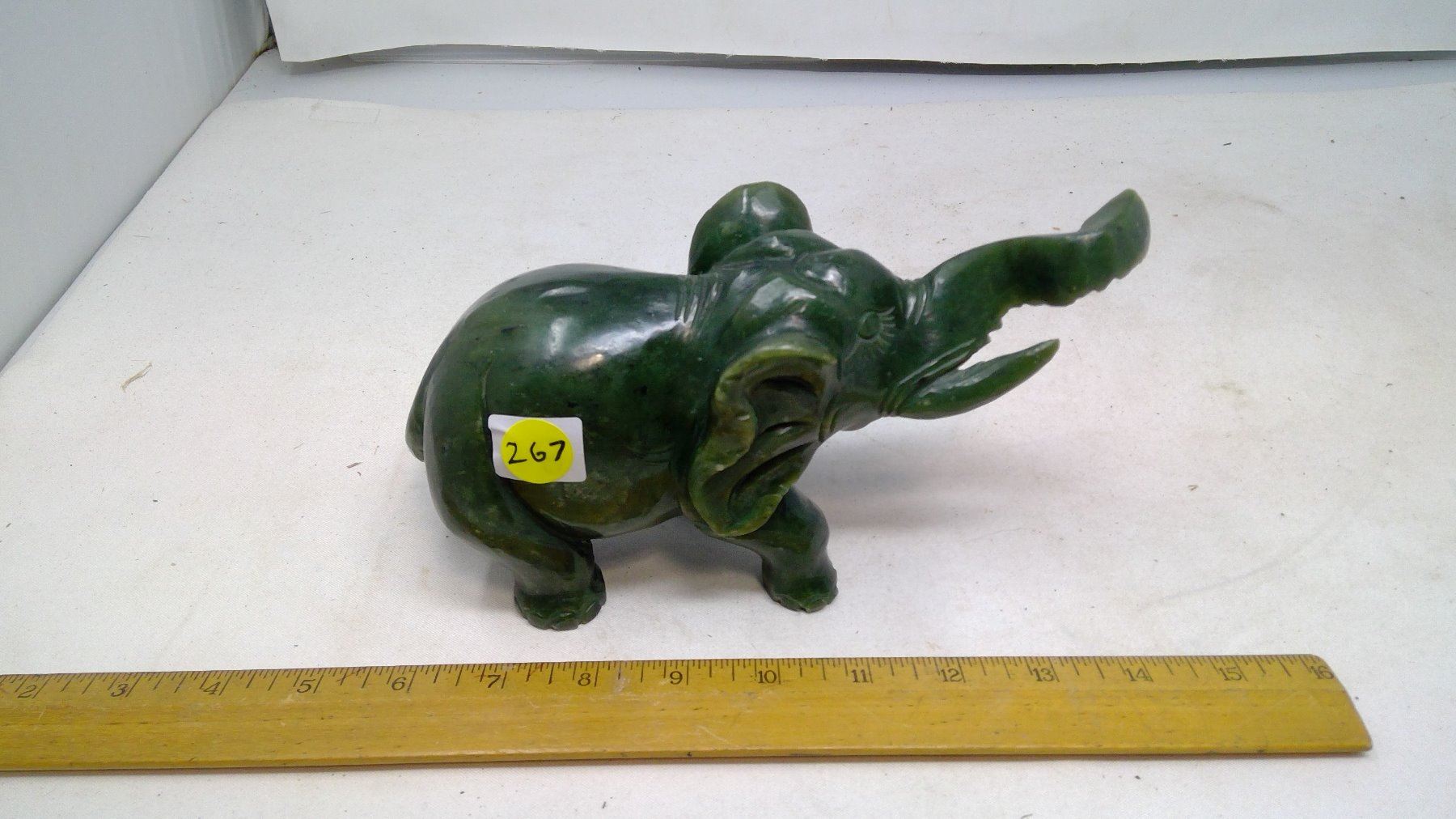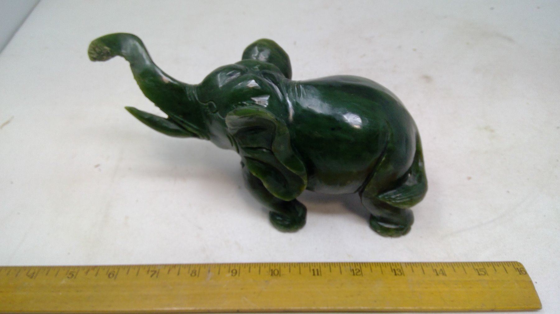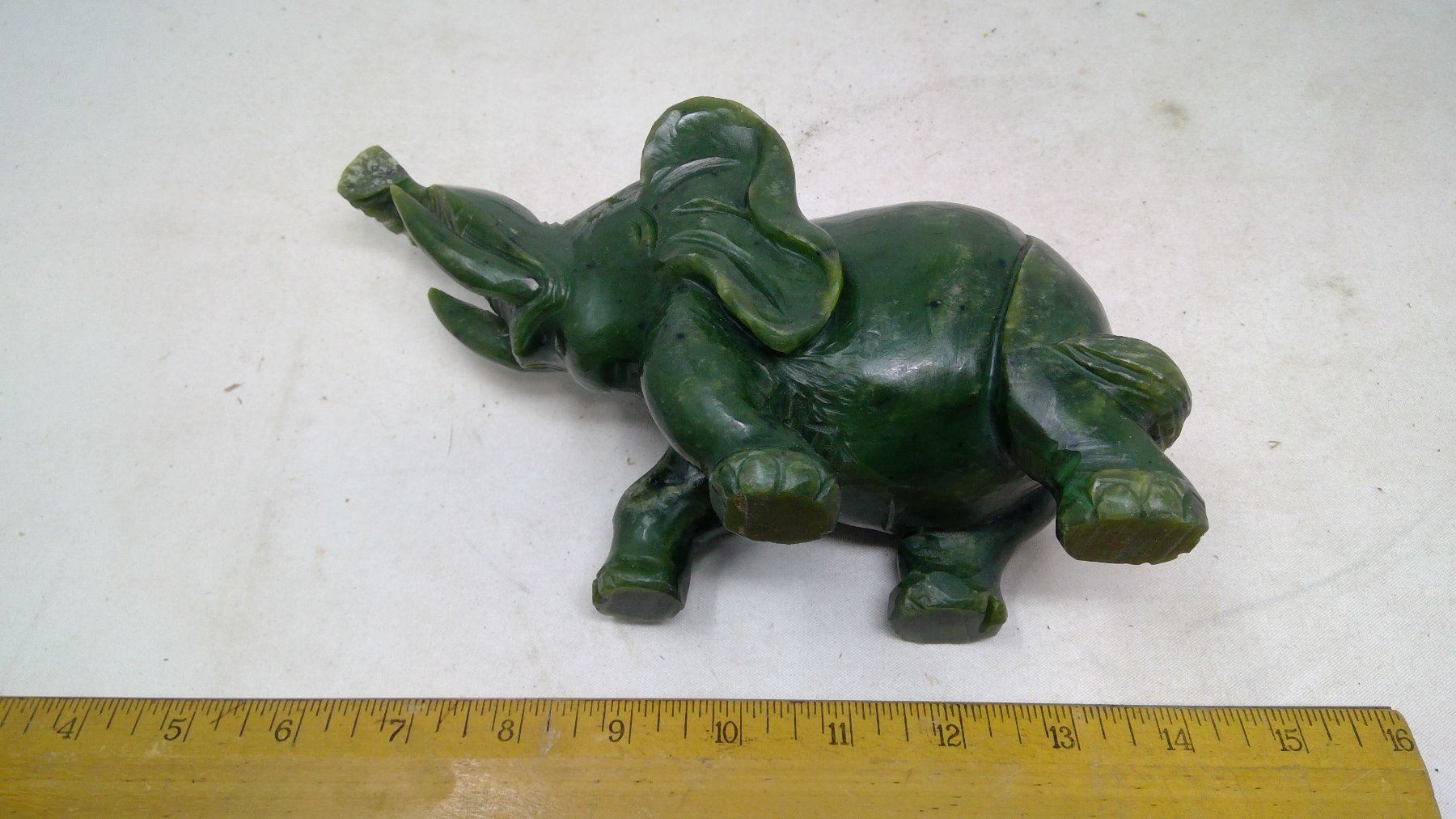 FIVE POUND GREEN JADE ELEPHANT SCULPTURE (trunk chipped)