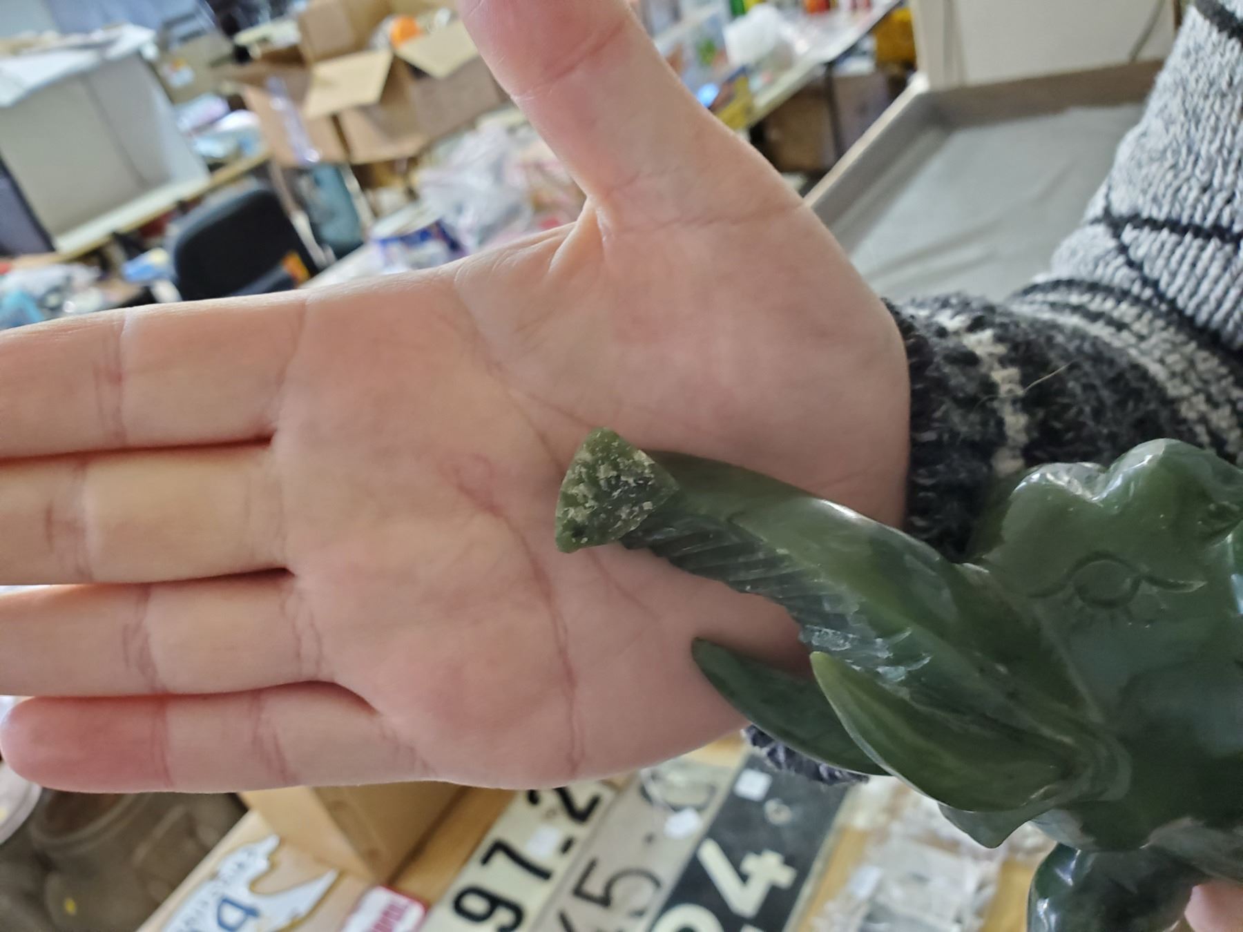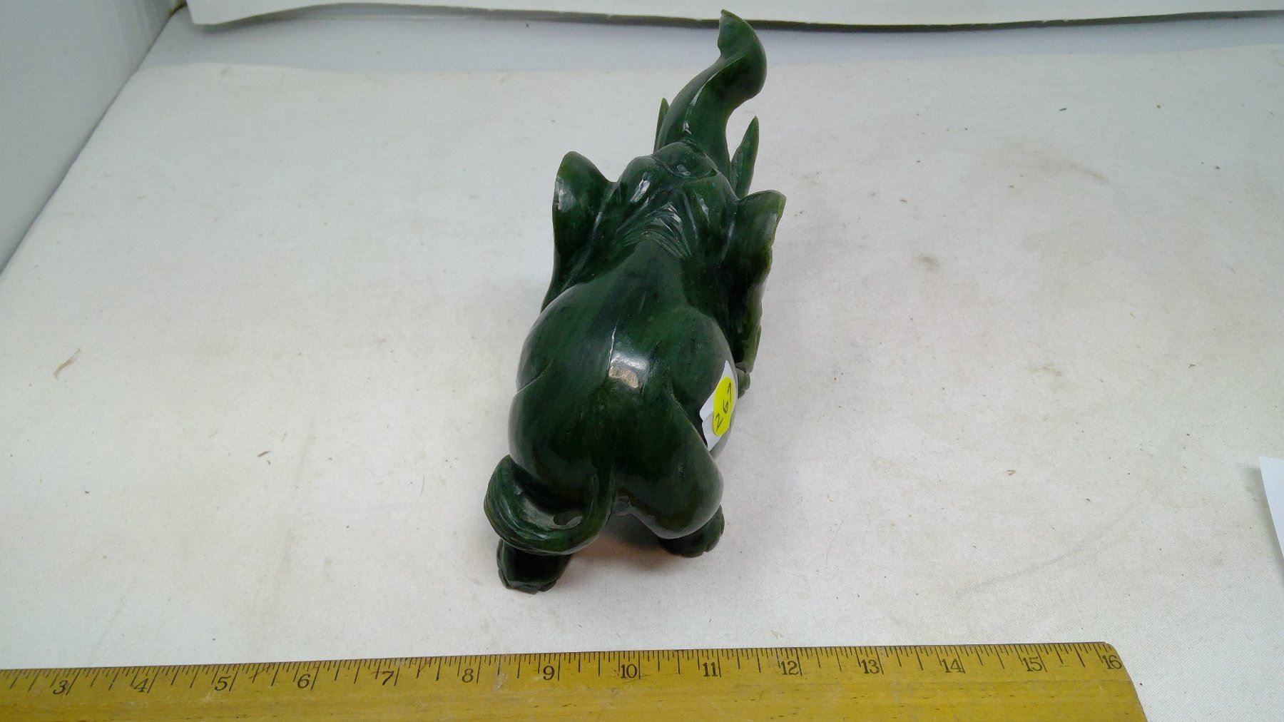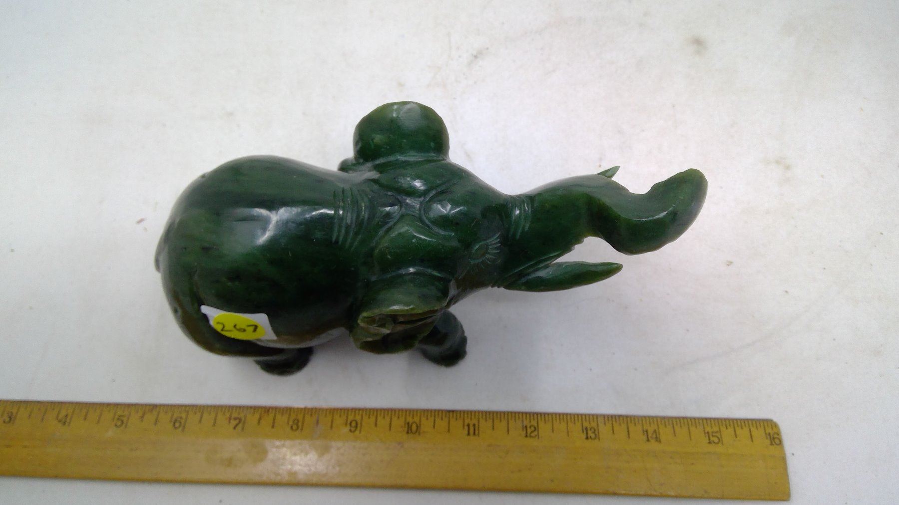 FIVE POUND GREEN JADE ELEPHANT SCULPTURE (trunk chipped)