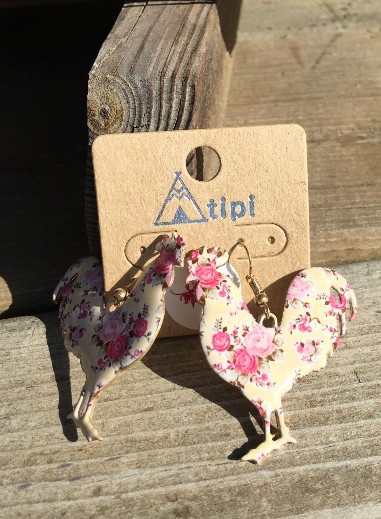 FLORAL ROOSTER EARRINGS/SOFT YELLOW PINK