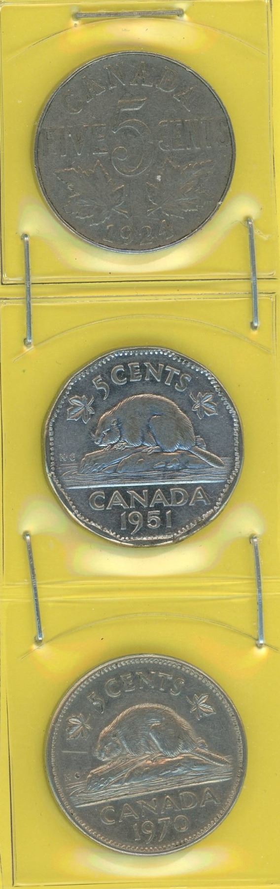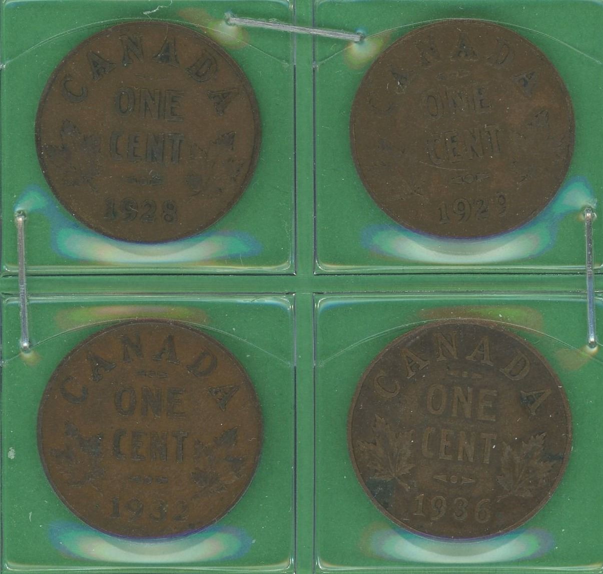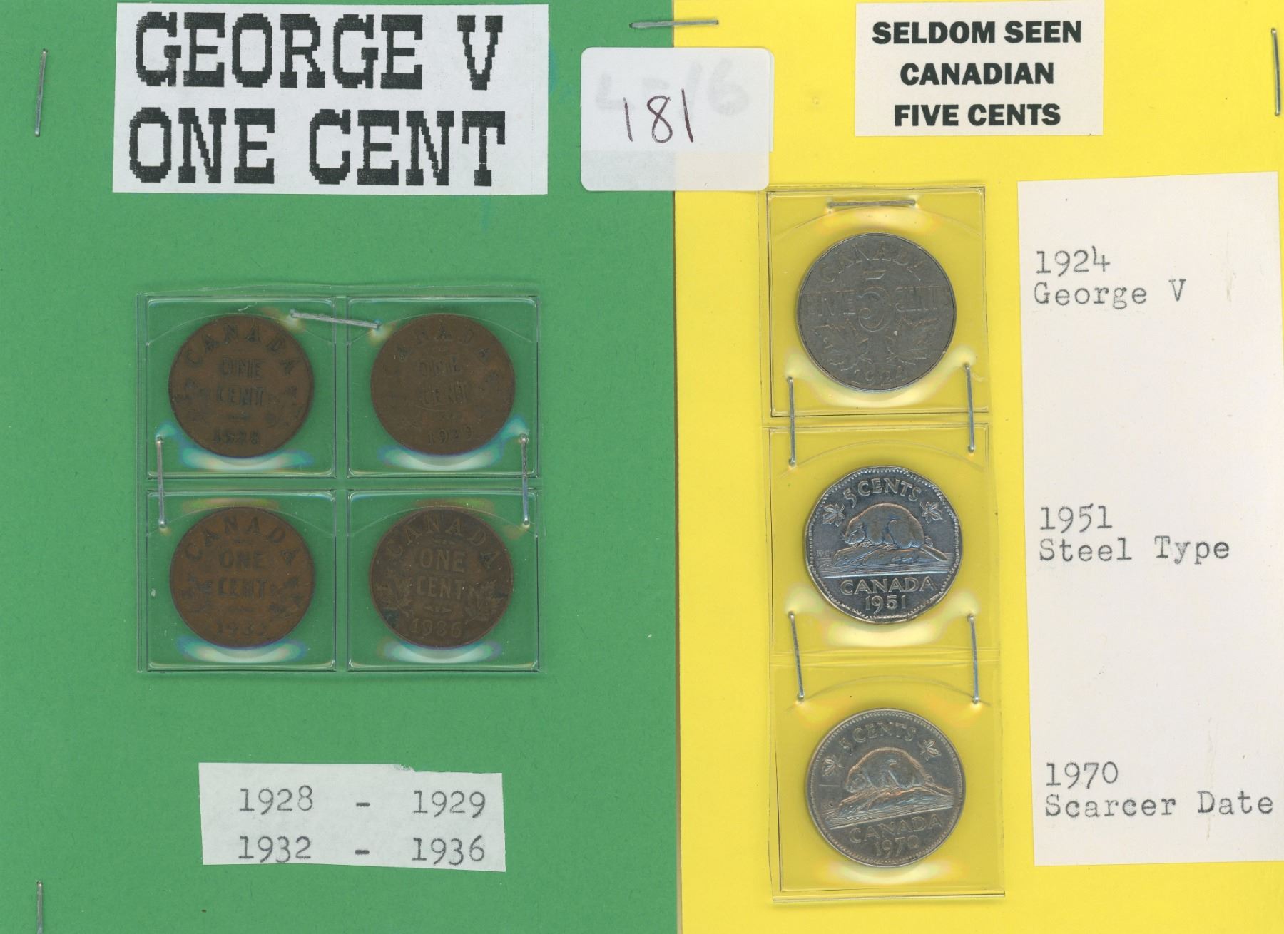 FOUR GEORGE V ONE CENT AND THREE SPECIAL CANADIAN FIVE CENTS