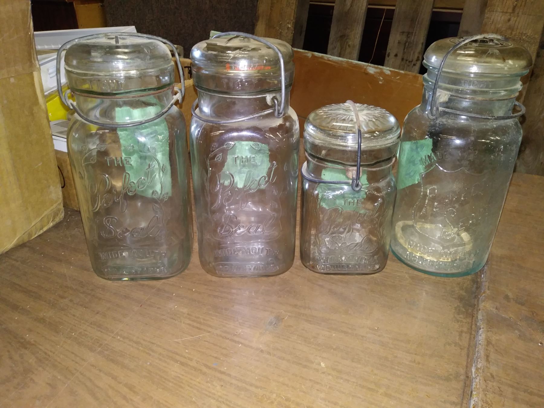 FOUR PERFECT SEAL MASON JARS (4 SQUARE, 1 ROUND)