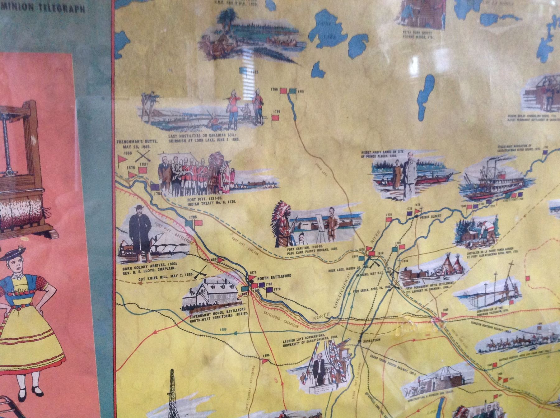 FRAMED 1955 HISTORIC SASKATCHEWAN POSTER. (24” X 36”)