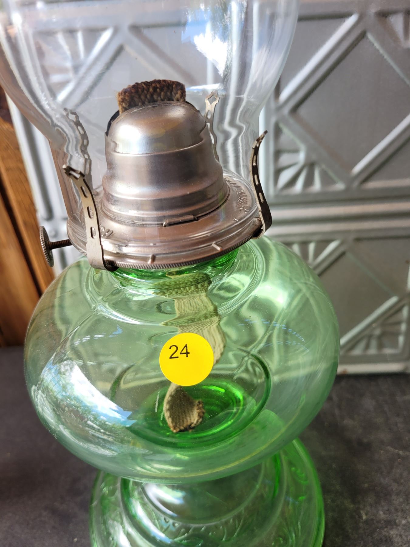 Fabulous Green Depression Coal Oil Lamp - Minty