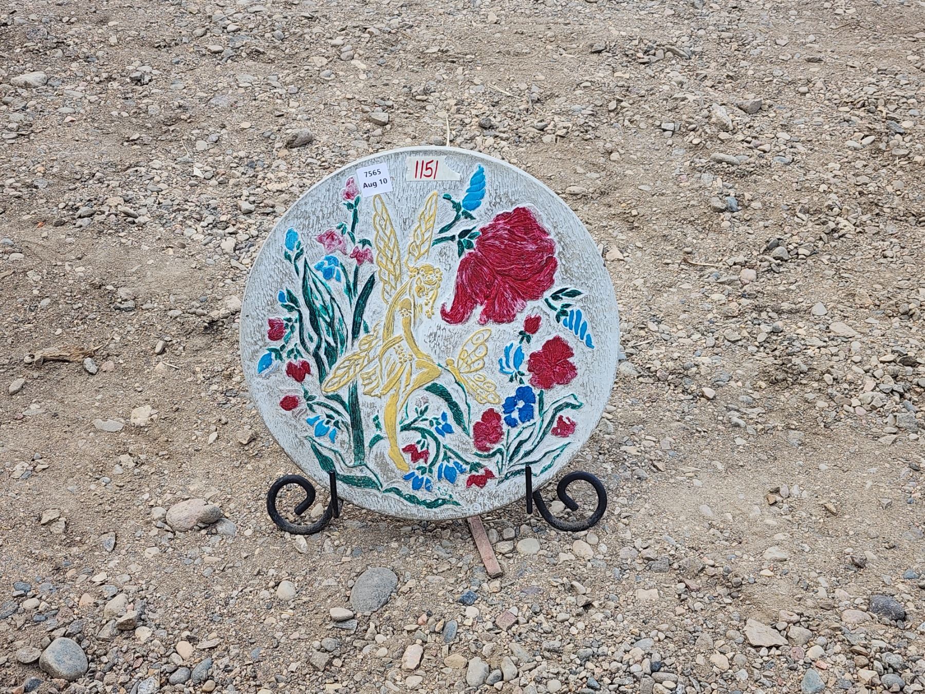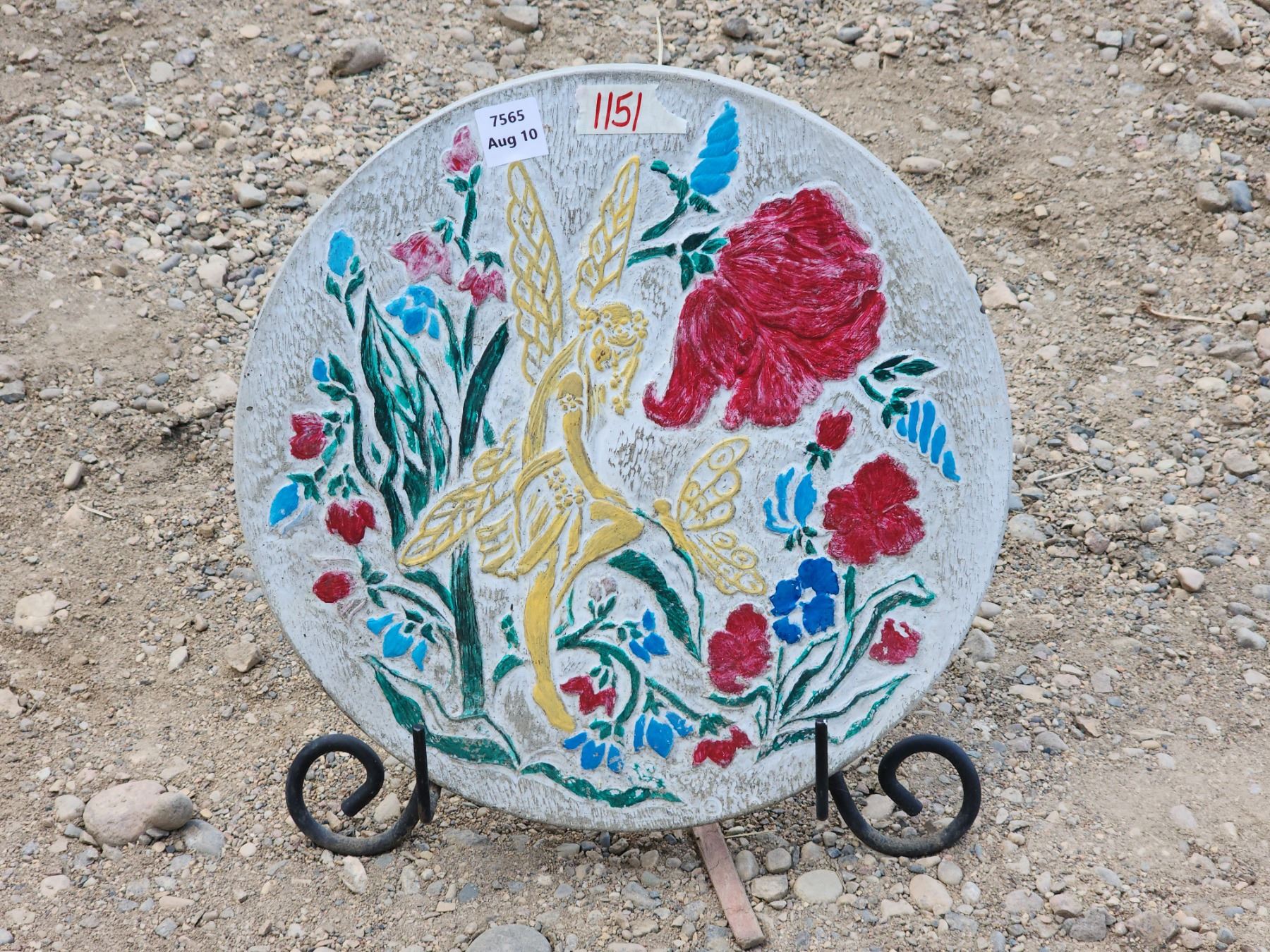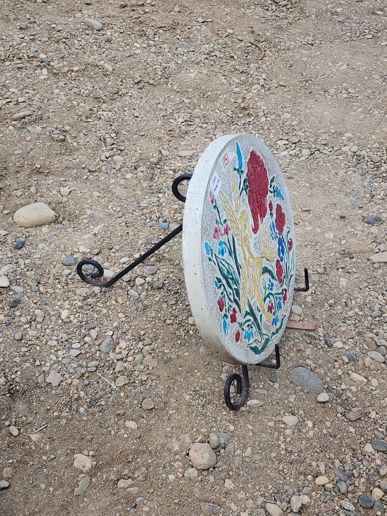 Fairy garden stepping stone, w/ holder - 16" across - heavy