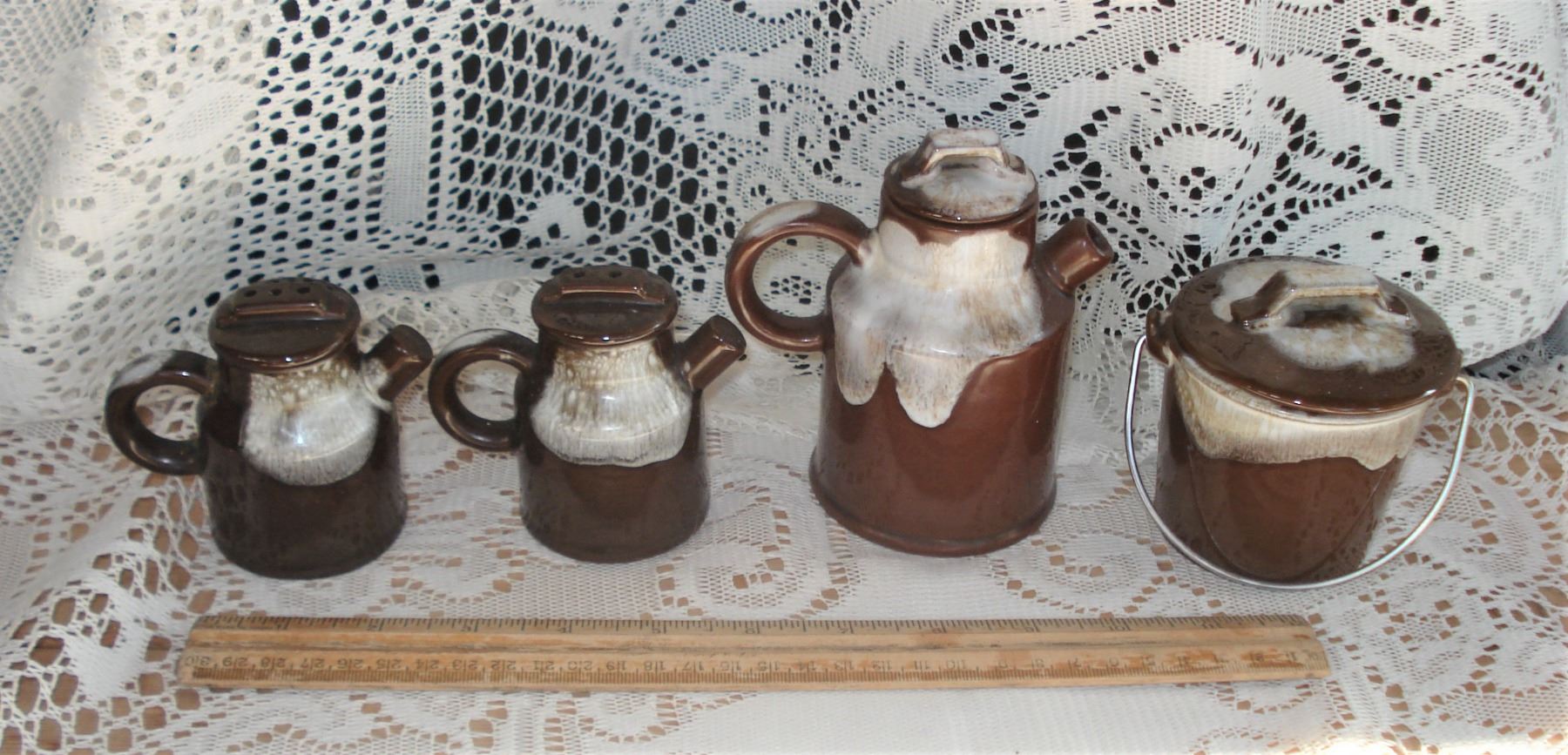 Farm/Country table set Creamer, Lidded Sugar bowl, S&P