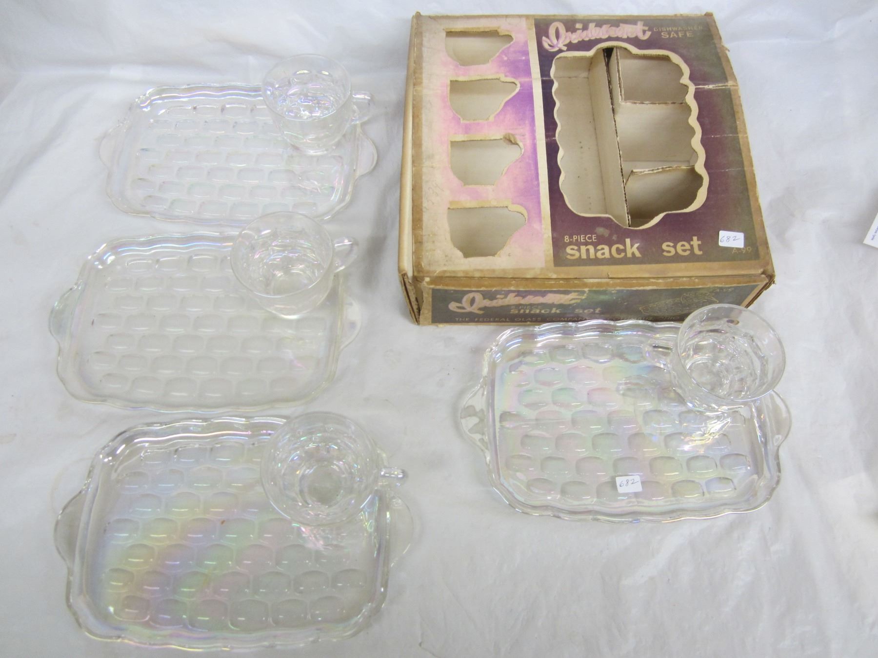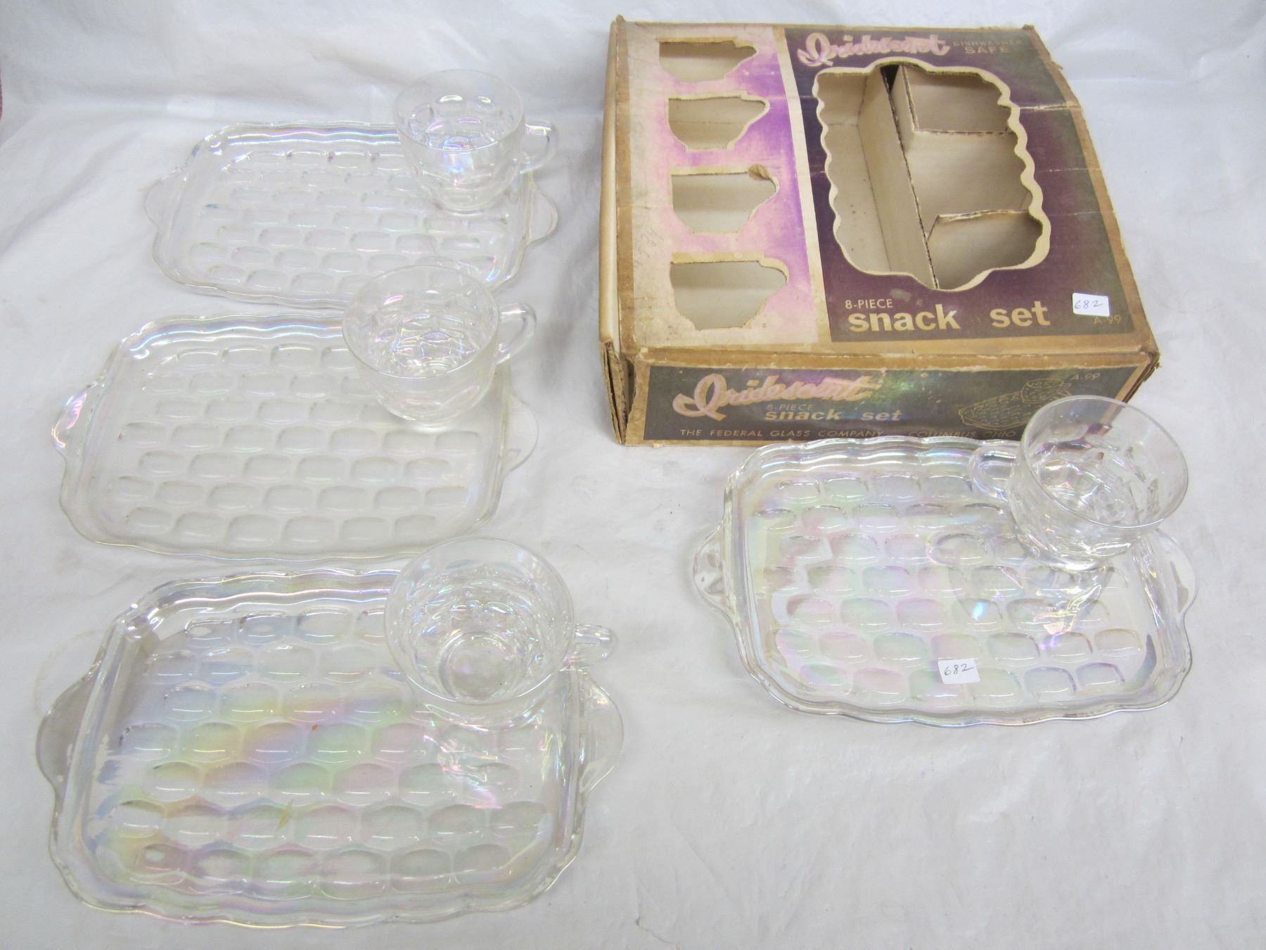 Federal Glass 8 piece Iridescent Snack Set with box 1960's