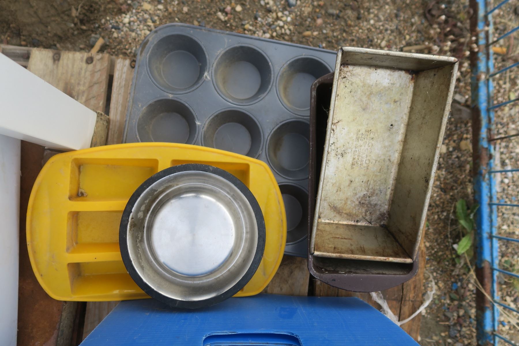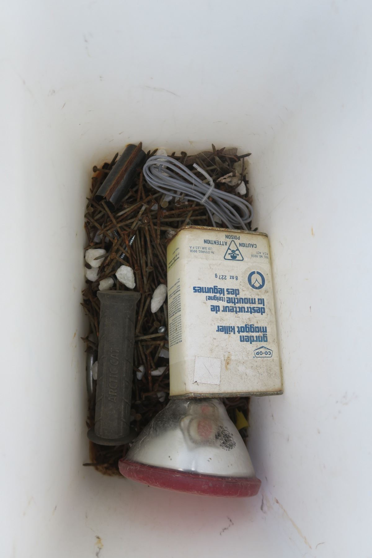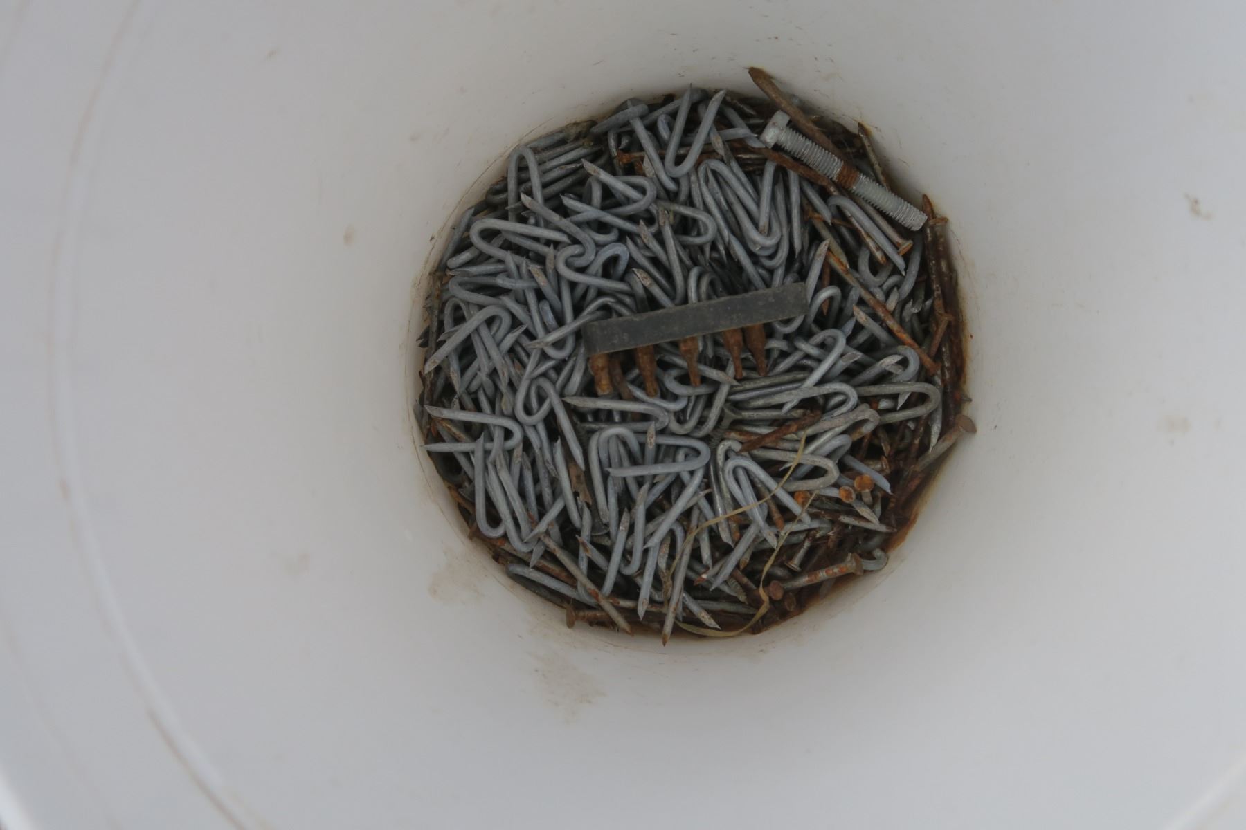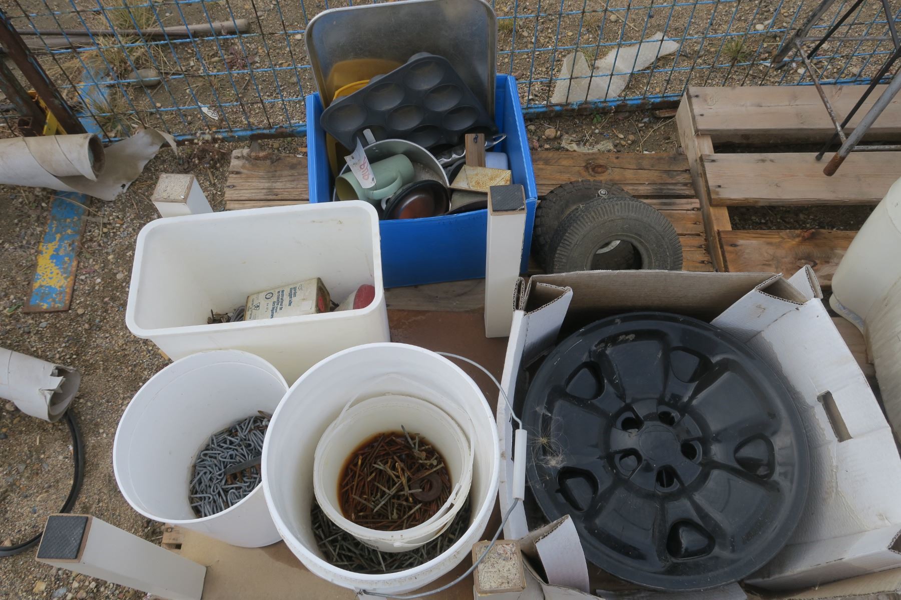 Fence Staples, Assorted nails, Assorted Kitchen items, Set of 4 hubcaps
