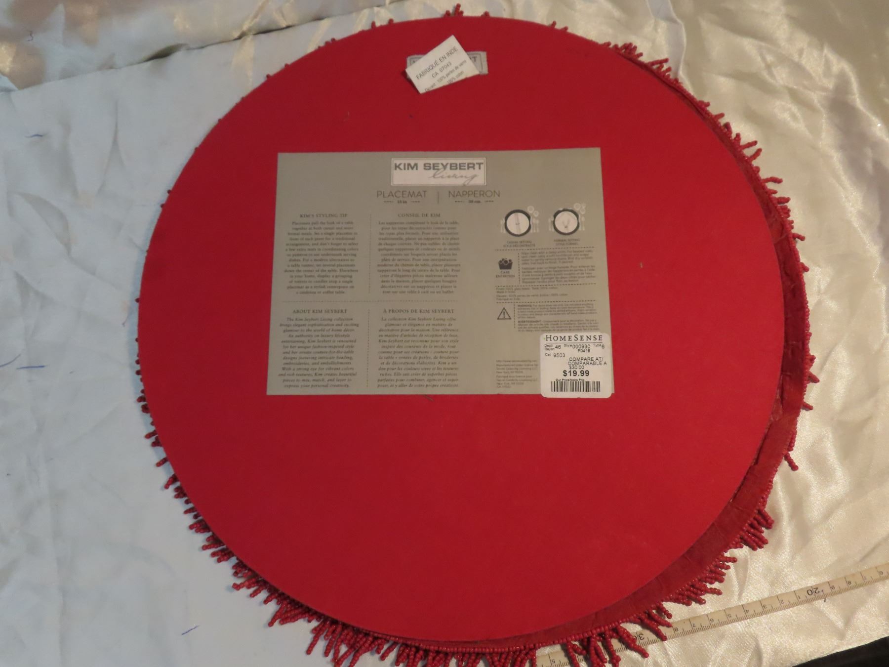 Fennco styles isla handmade glass beade design 15-inch round placemat