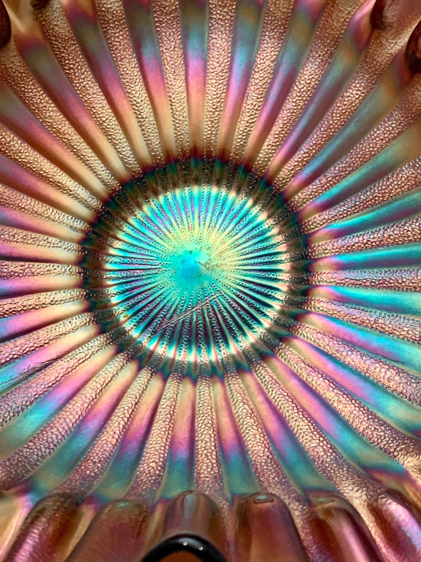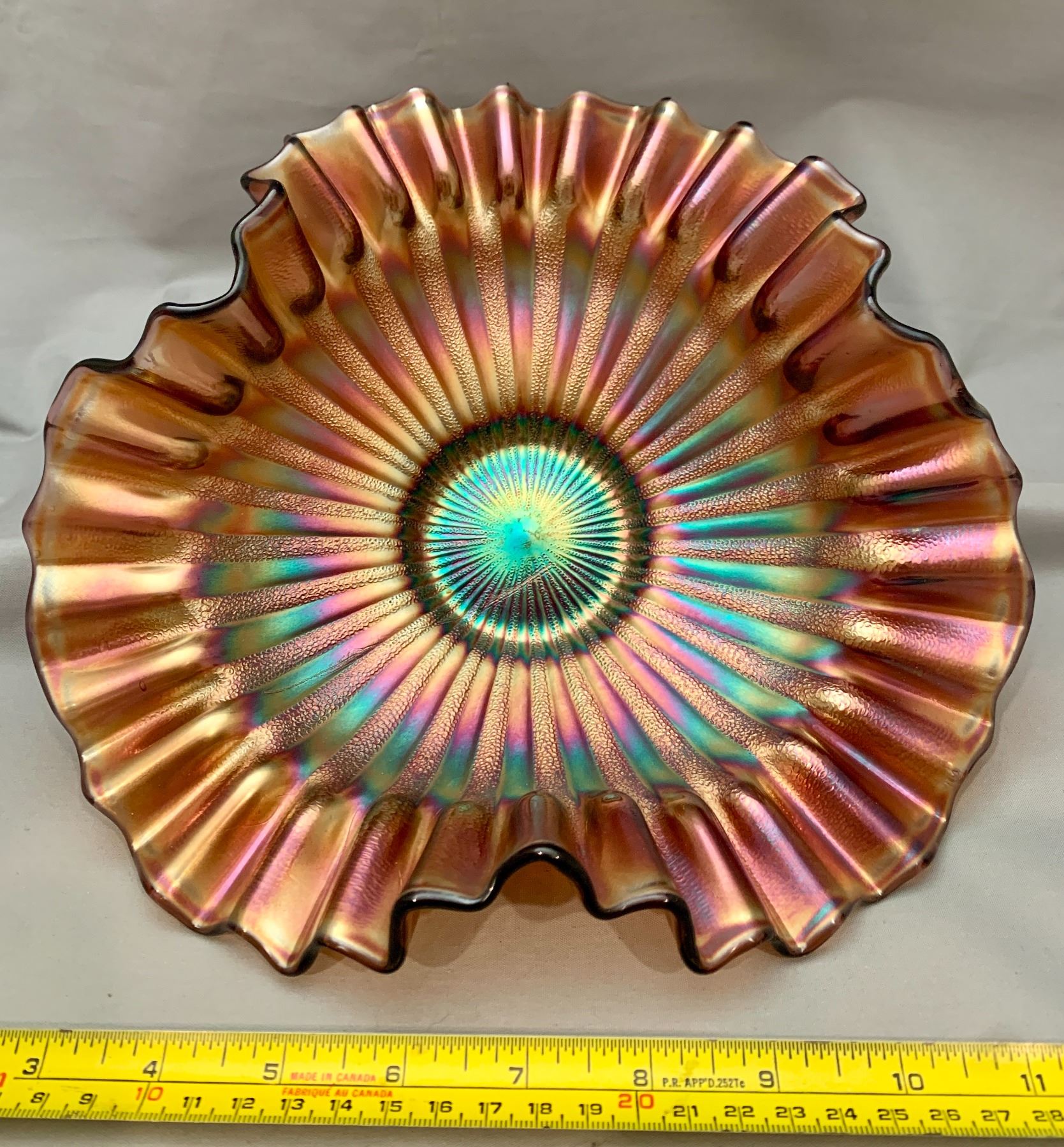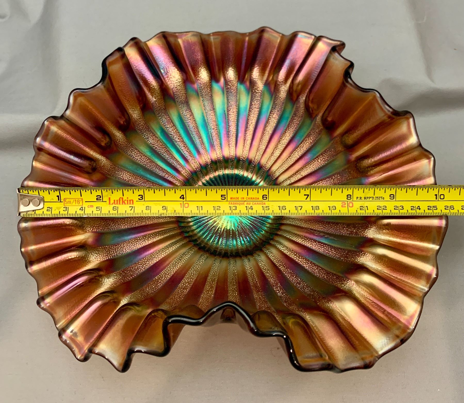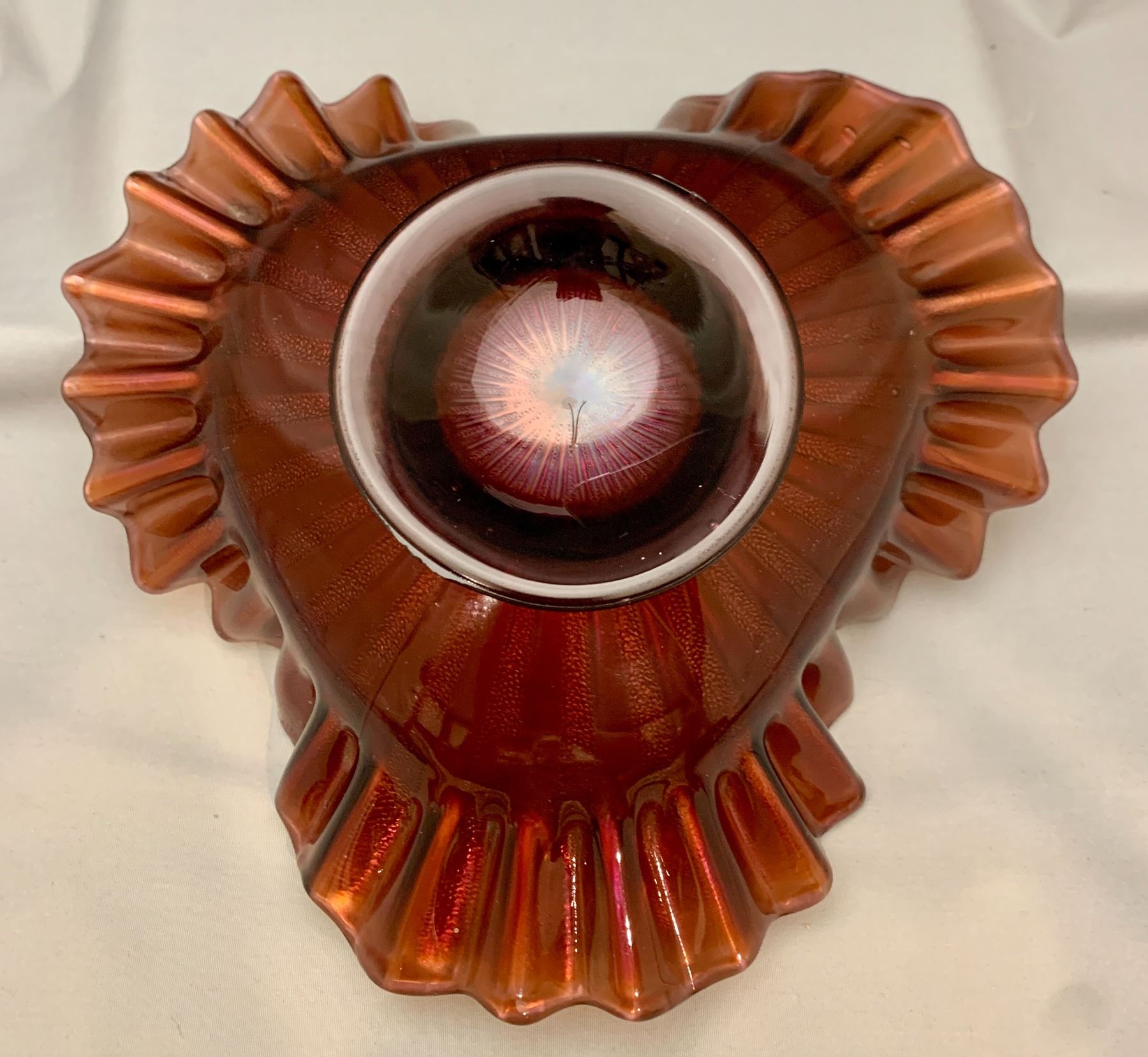 Fenton Amethyst "Stippled Rays" circa 1907 Tri-Corner Crimped-Edge Carnival Glass Bowl - Rare Shape