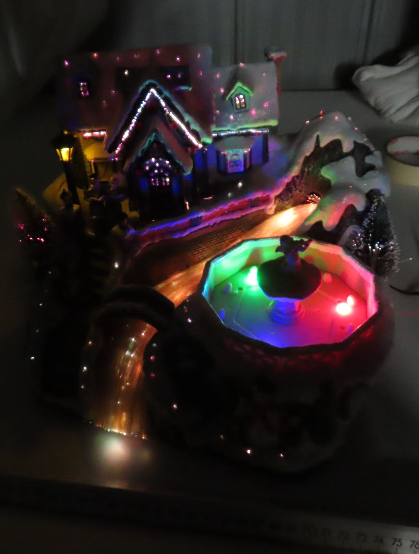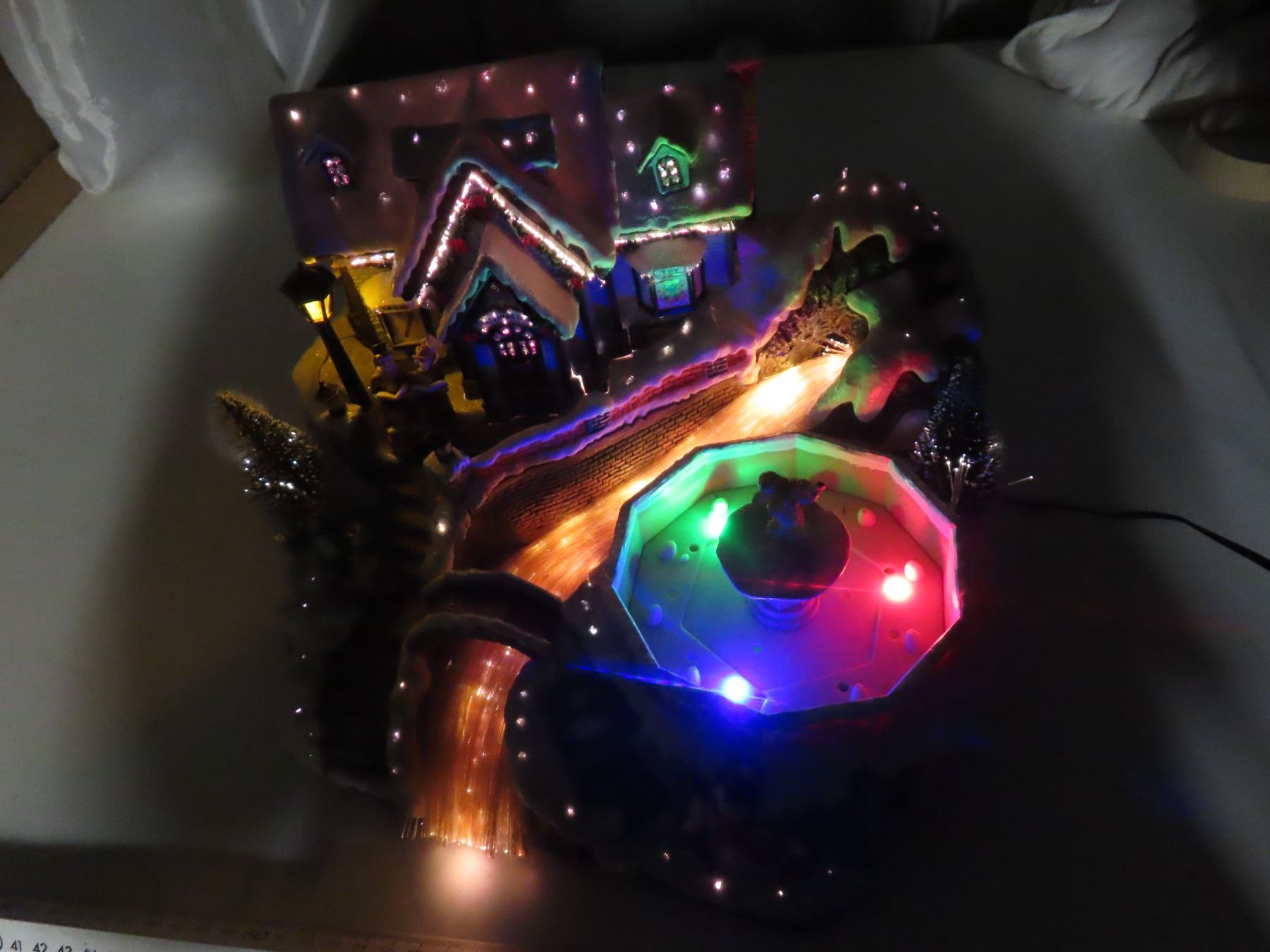 Fiber potic musical scene with fountain christmas lighted piece- working