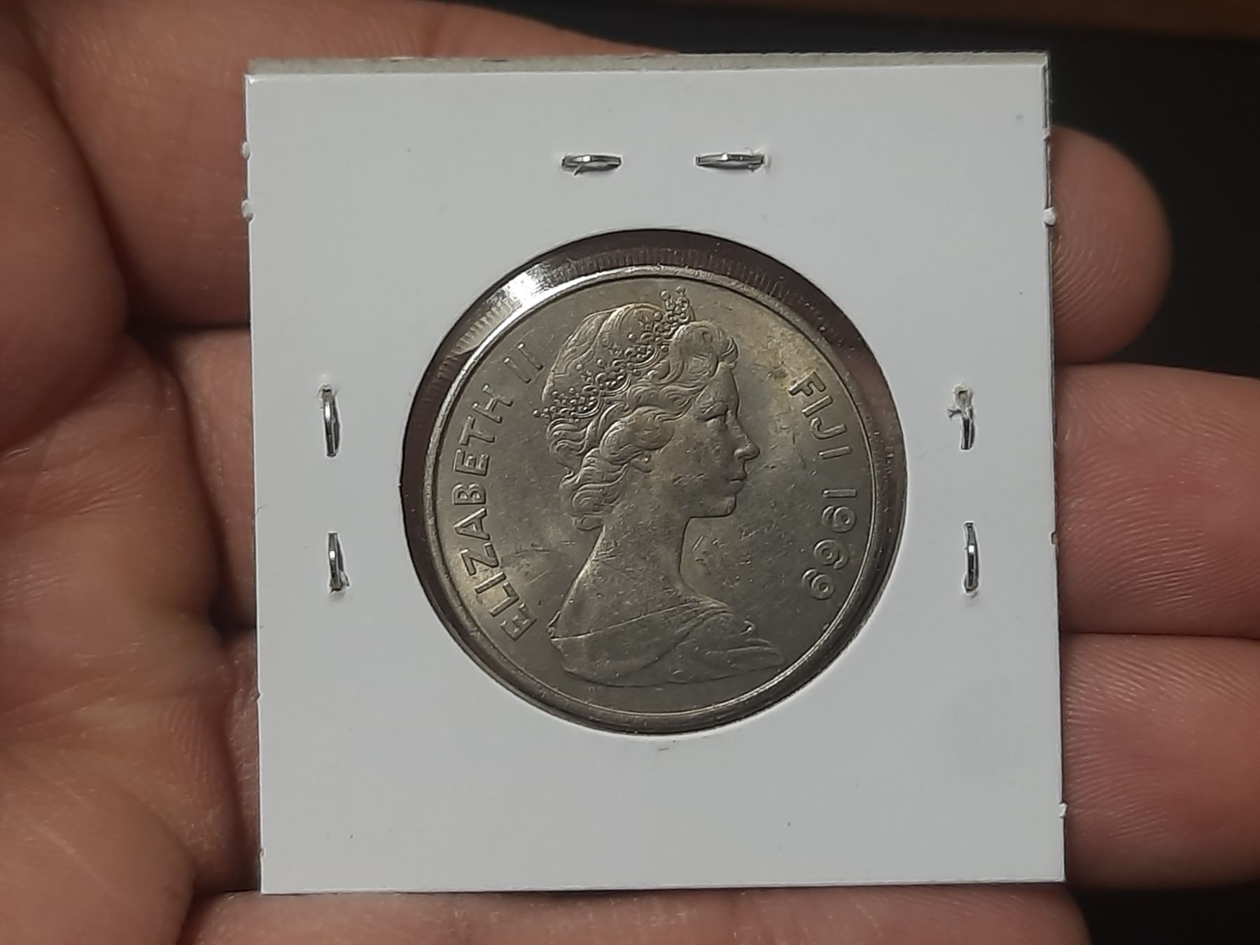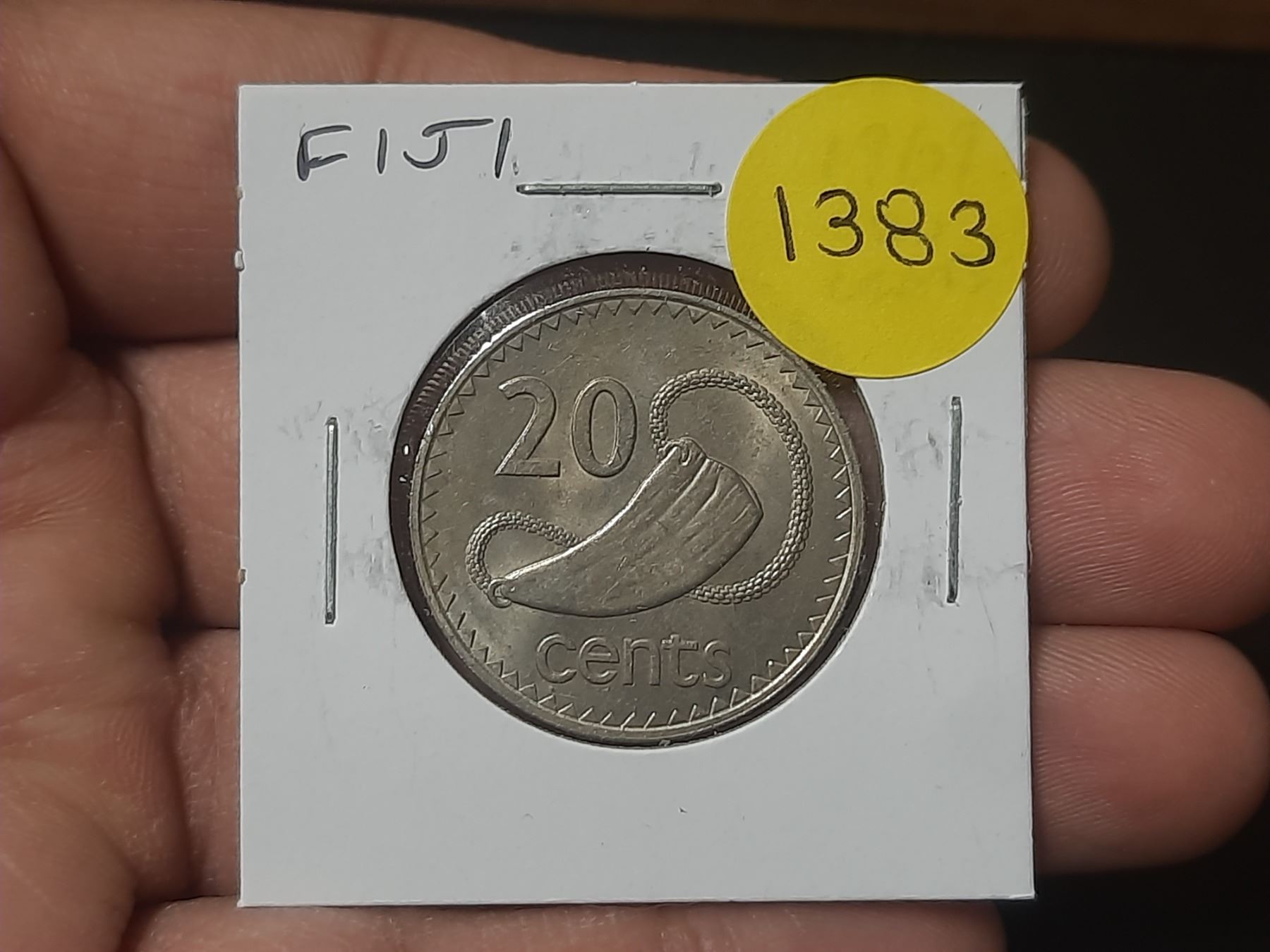 Fiji. 1969 20 Cents. Sperm Whale Tooth previously used as money in Fiji. VF+.