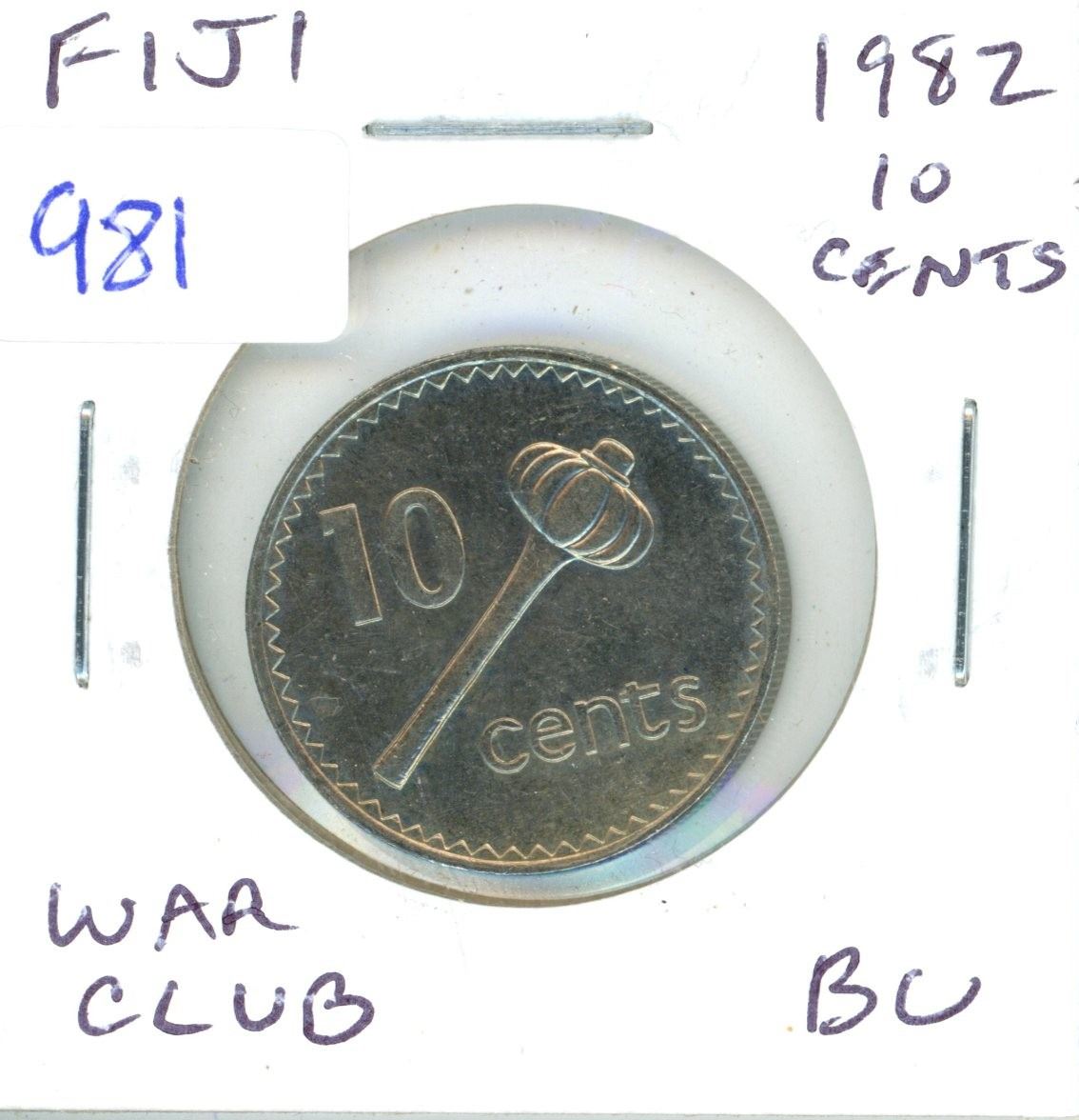 Fiji. 1982 10 Cents. Maori War Club. Brilliant Uncirculated.