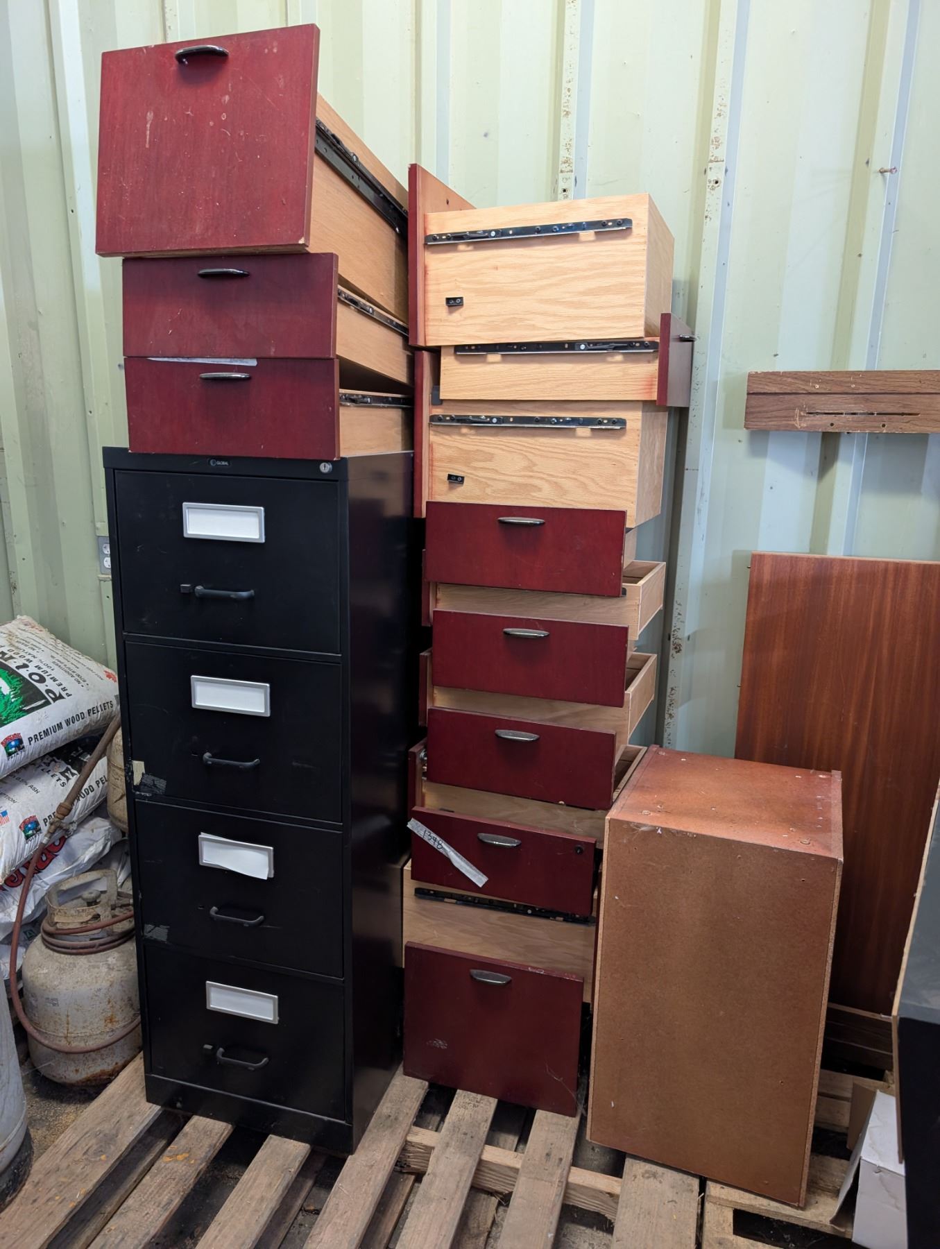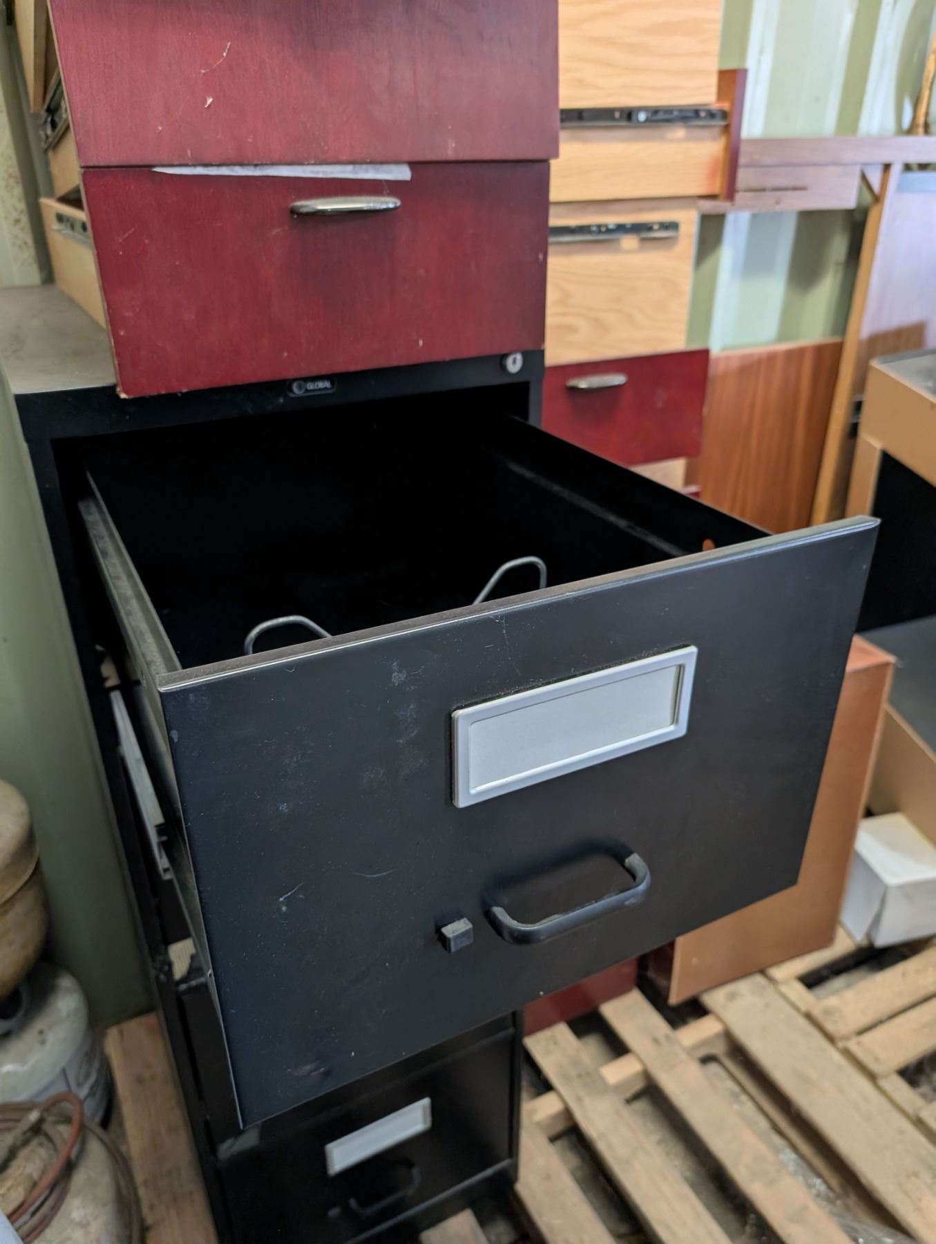 Filing cabinet(29" by 24" by 51"H) and misc drawers