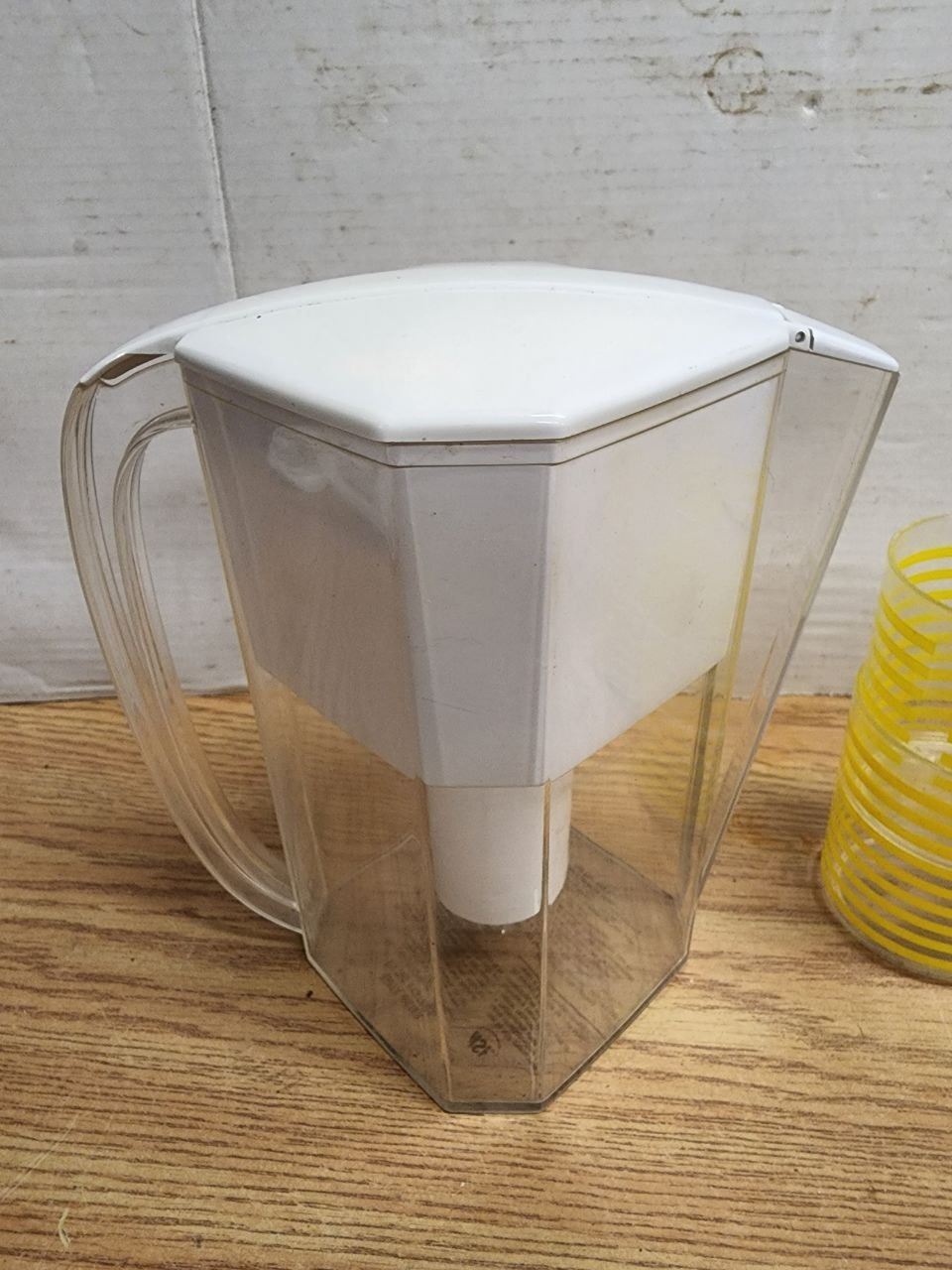 Filtered Drinking Pitcher & 4 Yellow Plastic Drinking Cups