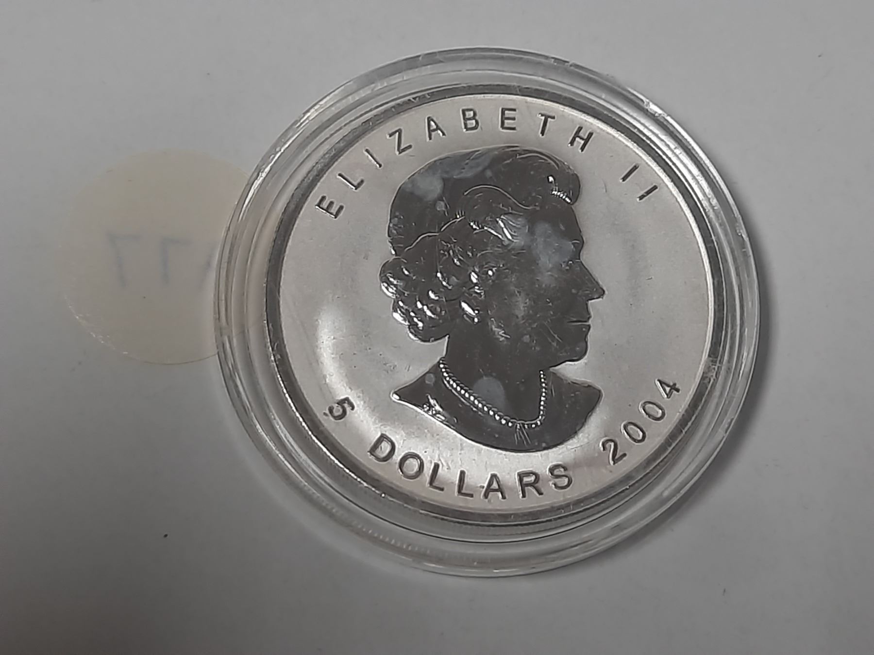 Fine silver 1 OZ argent purr- 2004 5 dollars