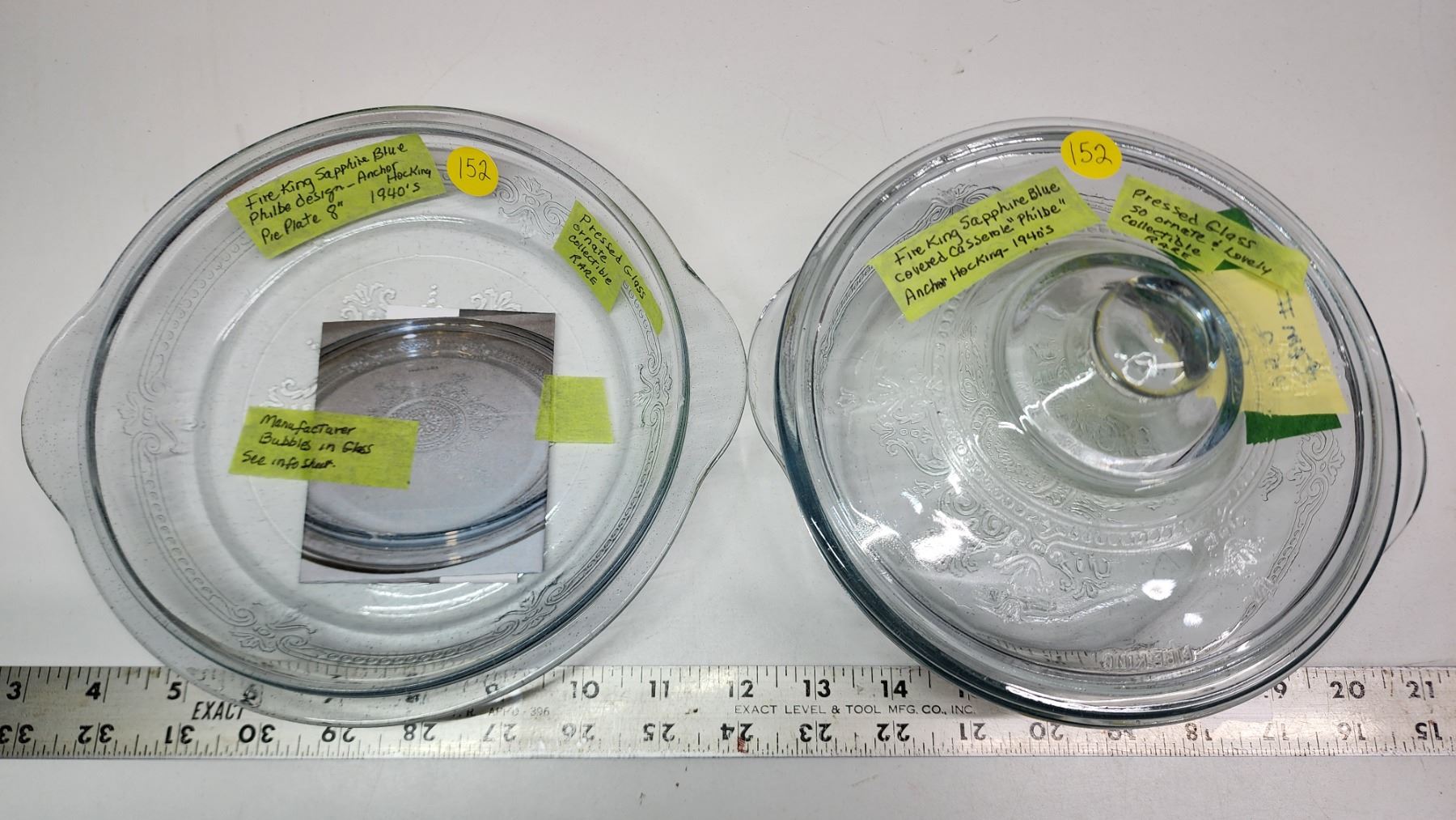 Fire King/Anchor Hocking Sapphire Blue "Philbe" Casserole, Lid & Pie Plate 1940's