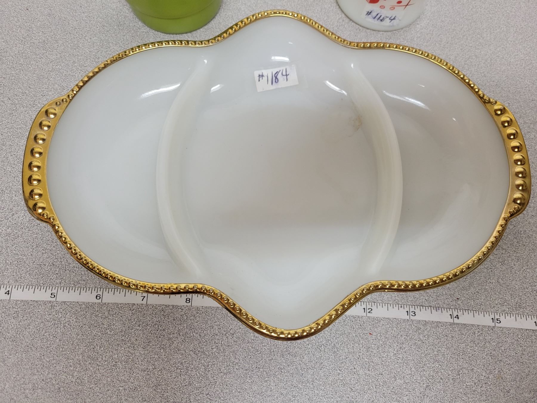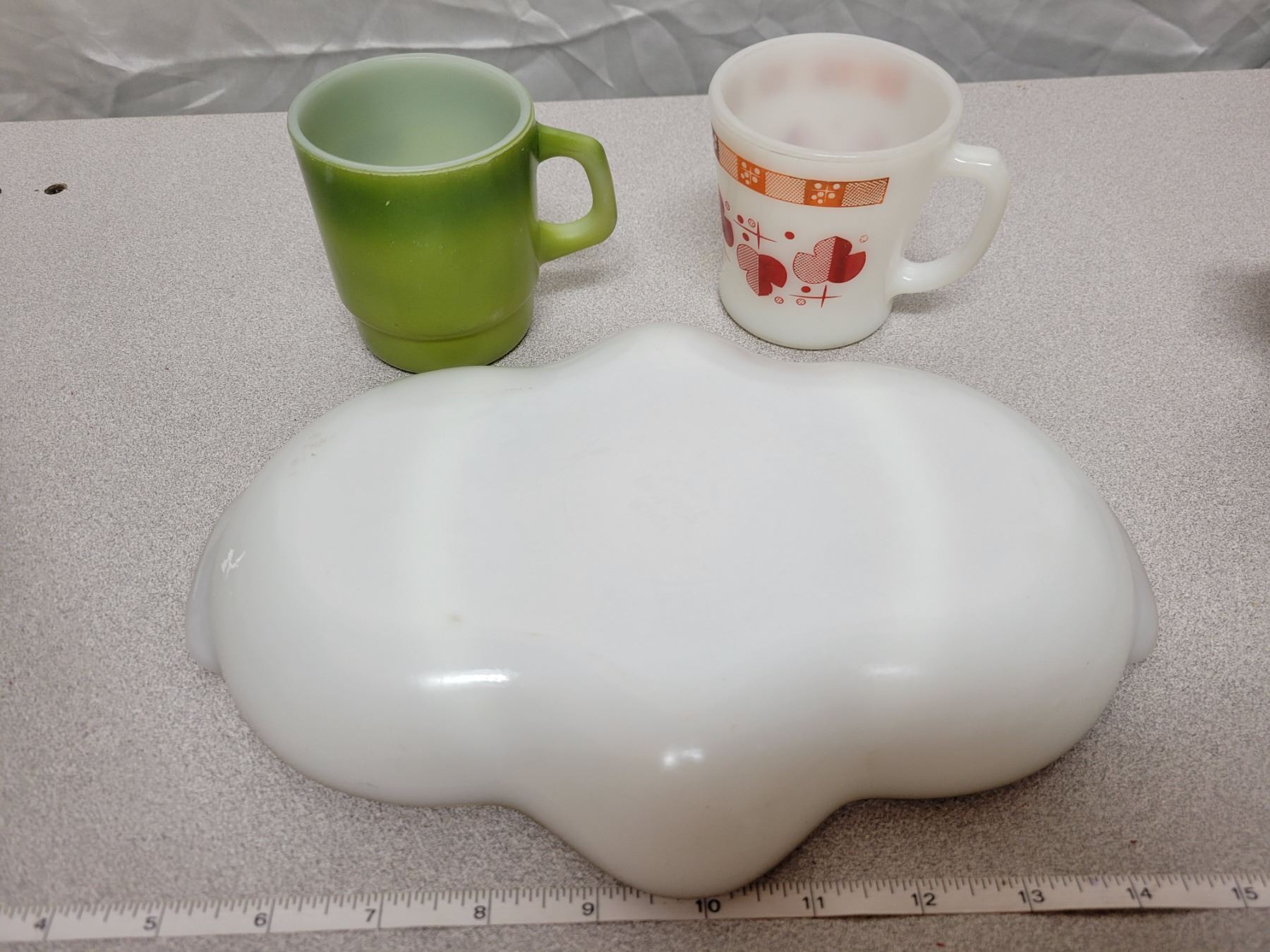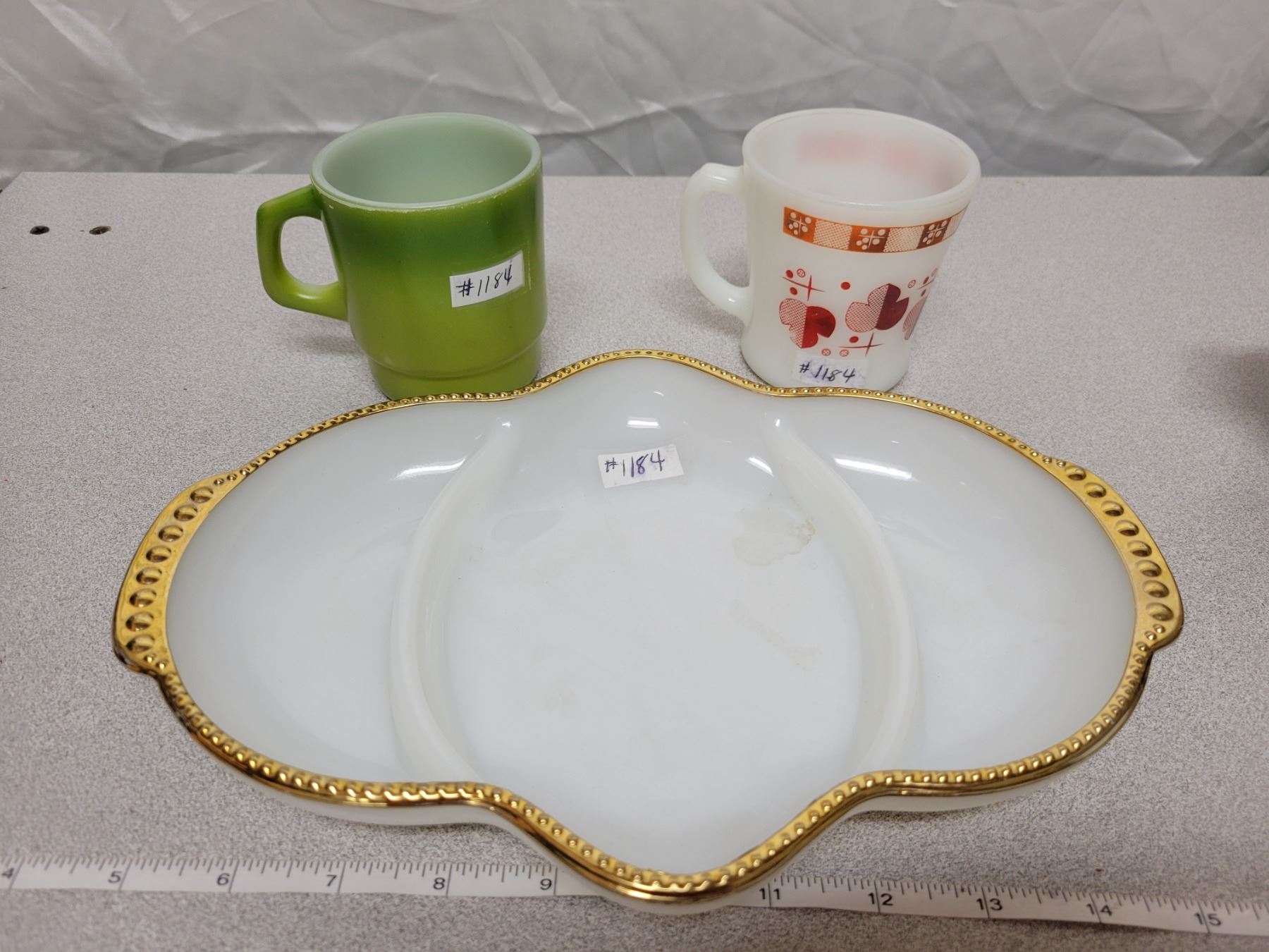 FireKing relish, 2 FireKing cups