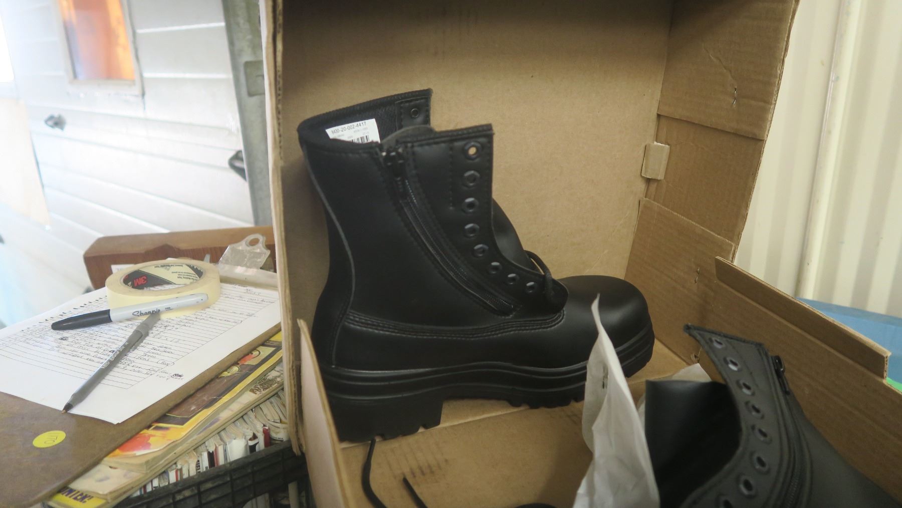 Firefighter Boots with zippers, new in box, size 9. 1 older pair of boots size 9