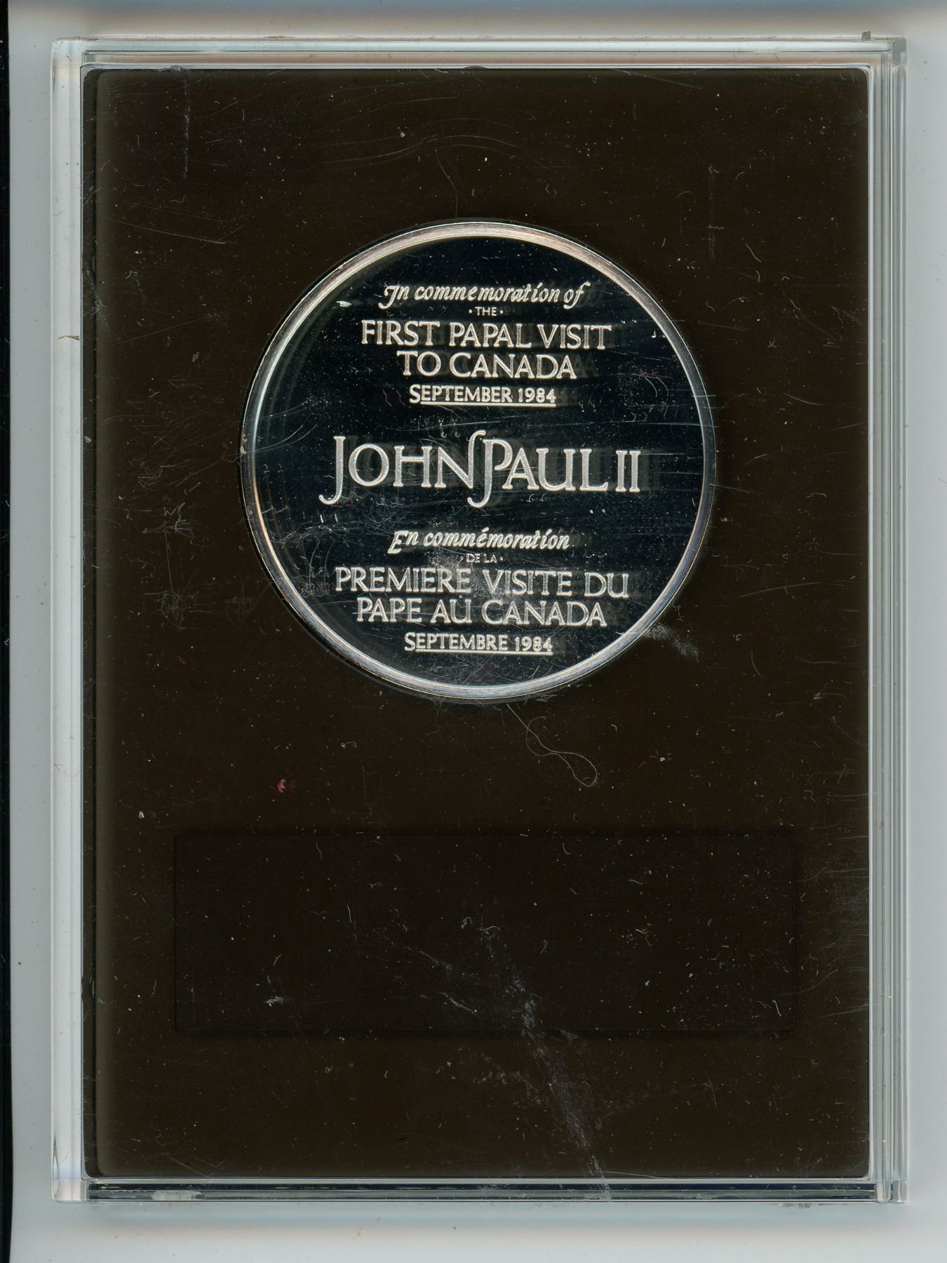 First Papal Visit to Canada of Pope John Paul II Sterling Silver Medal. Housed in its original hard plastic holder.