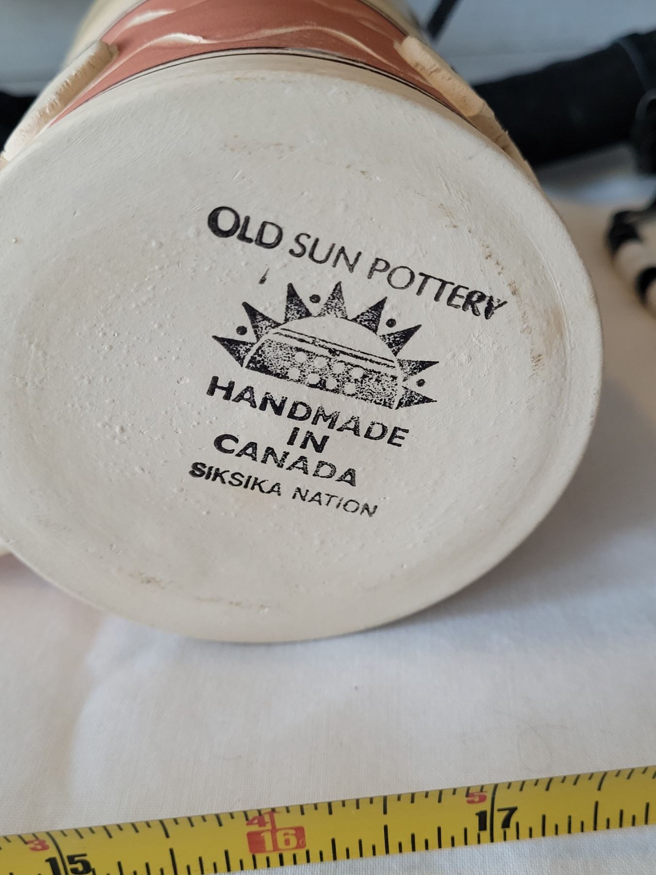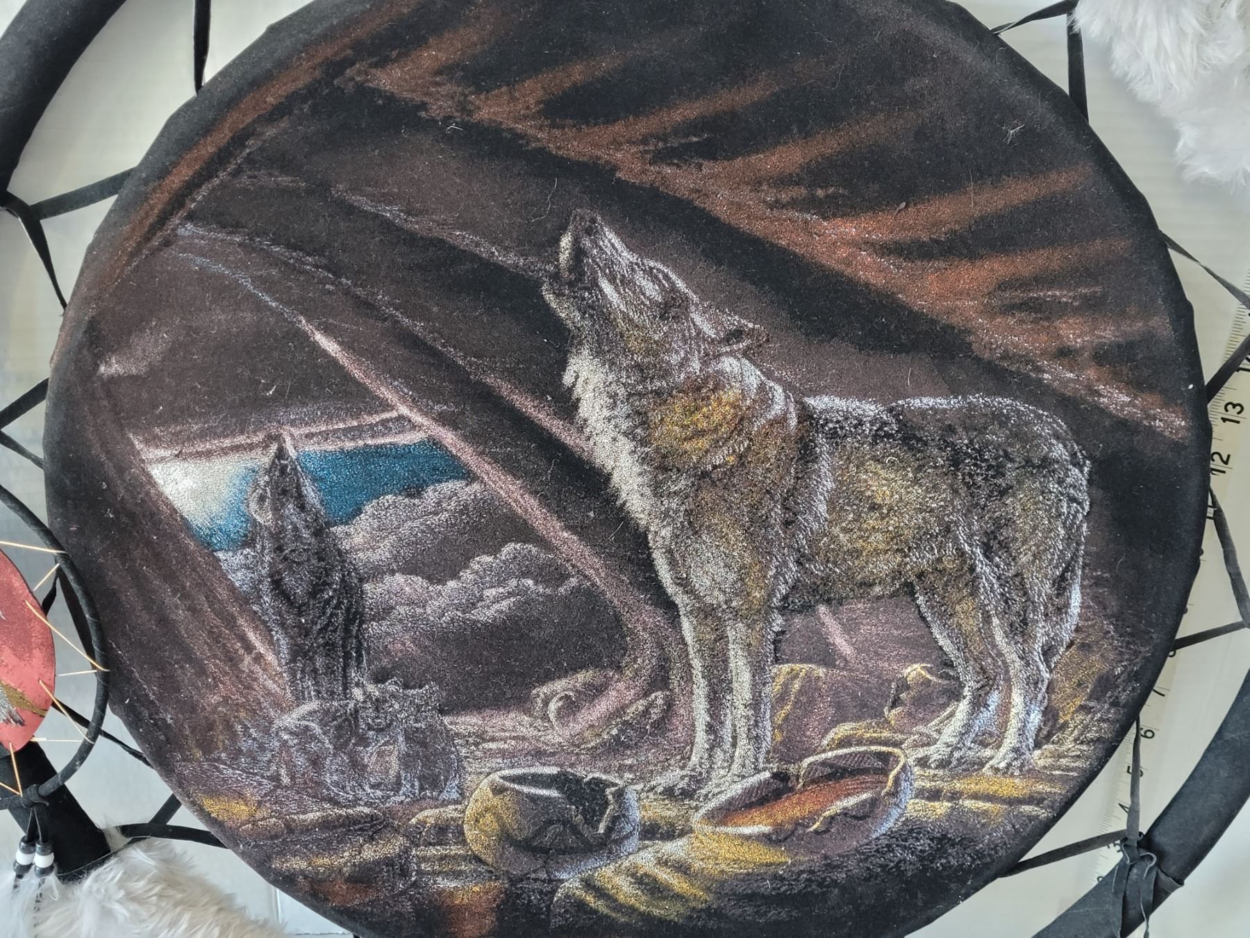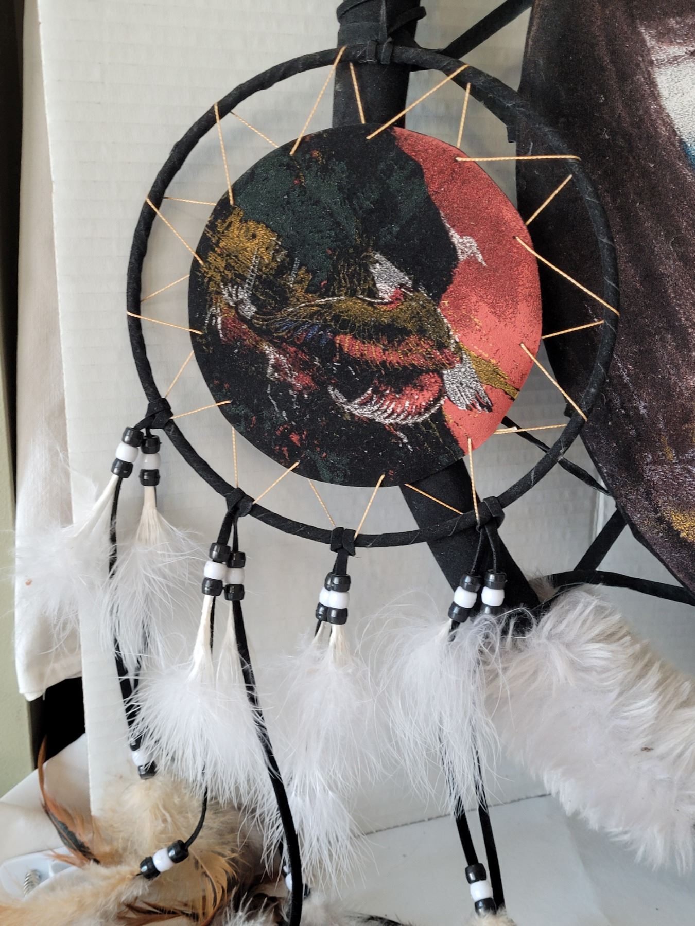 First nation dream catcher. Wolf painted on velvet. Pottery mug hand made by Siksika nation.