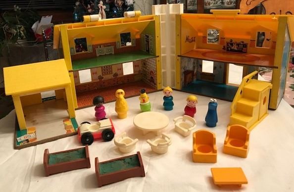 Fisher-Price Play Family Vintage Playhouse (no original box) with 6 characters & accessories