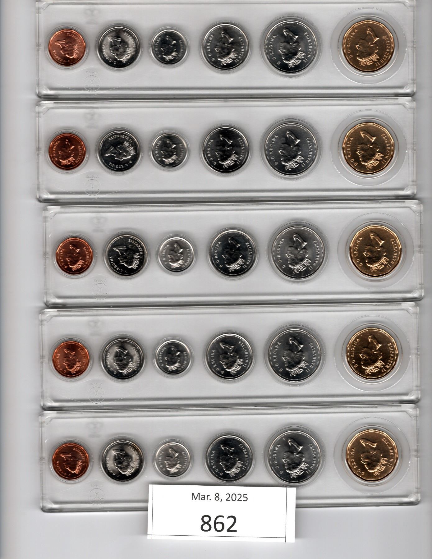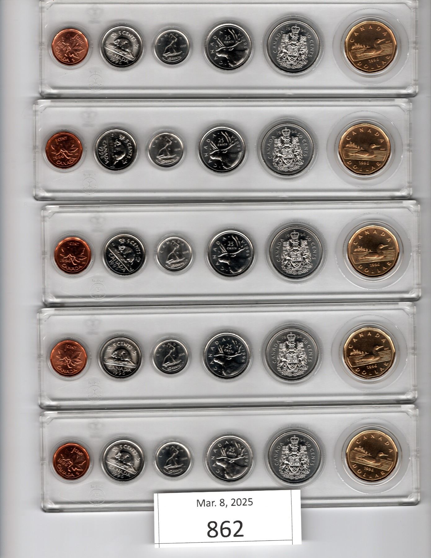 Five - 6 Coin Sets of 1996 Canadian Coins in plastic trays