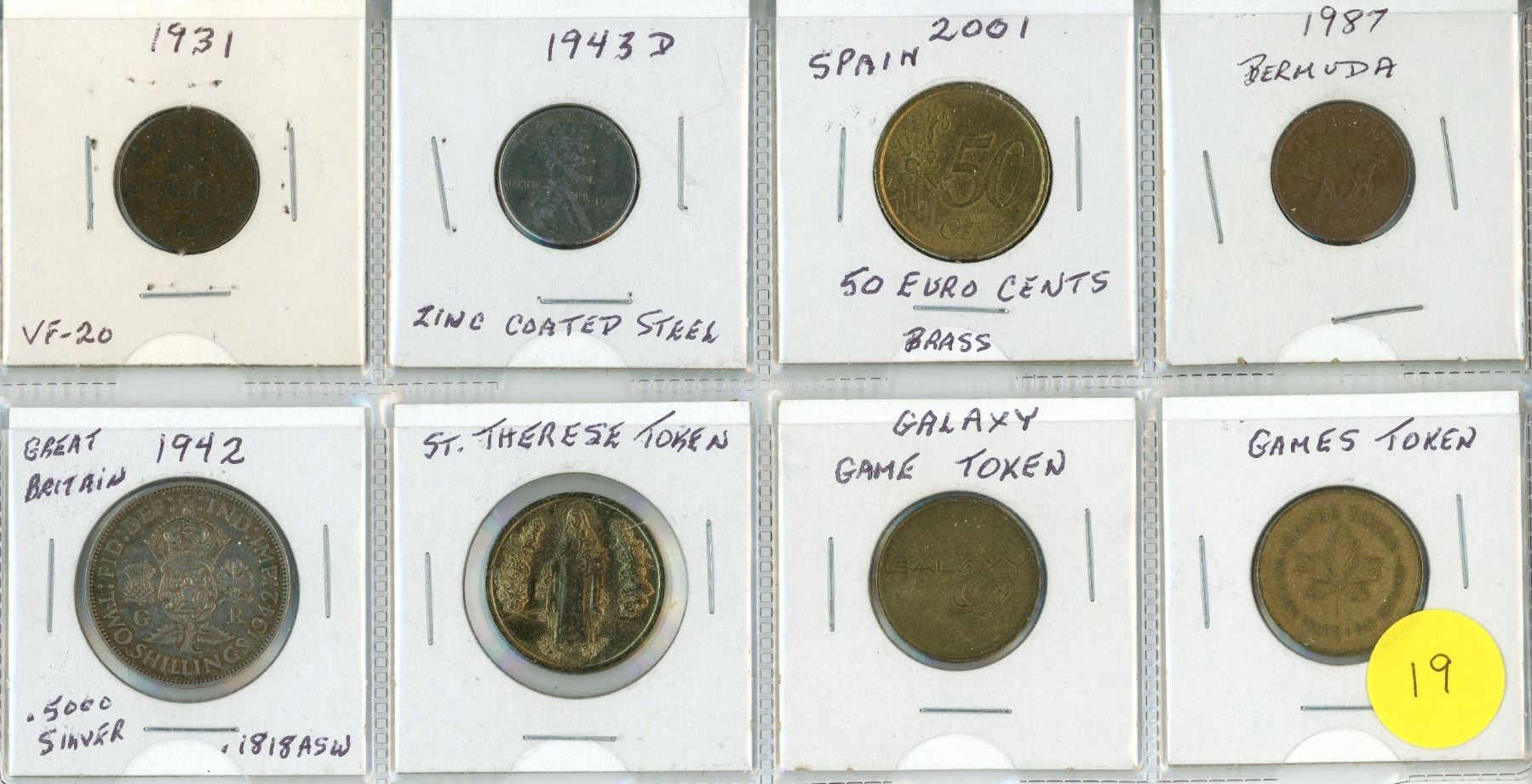 Five World Coins and Three Tokens - Refer to Picture