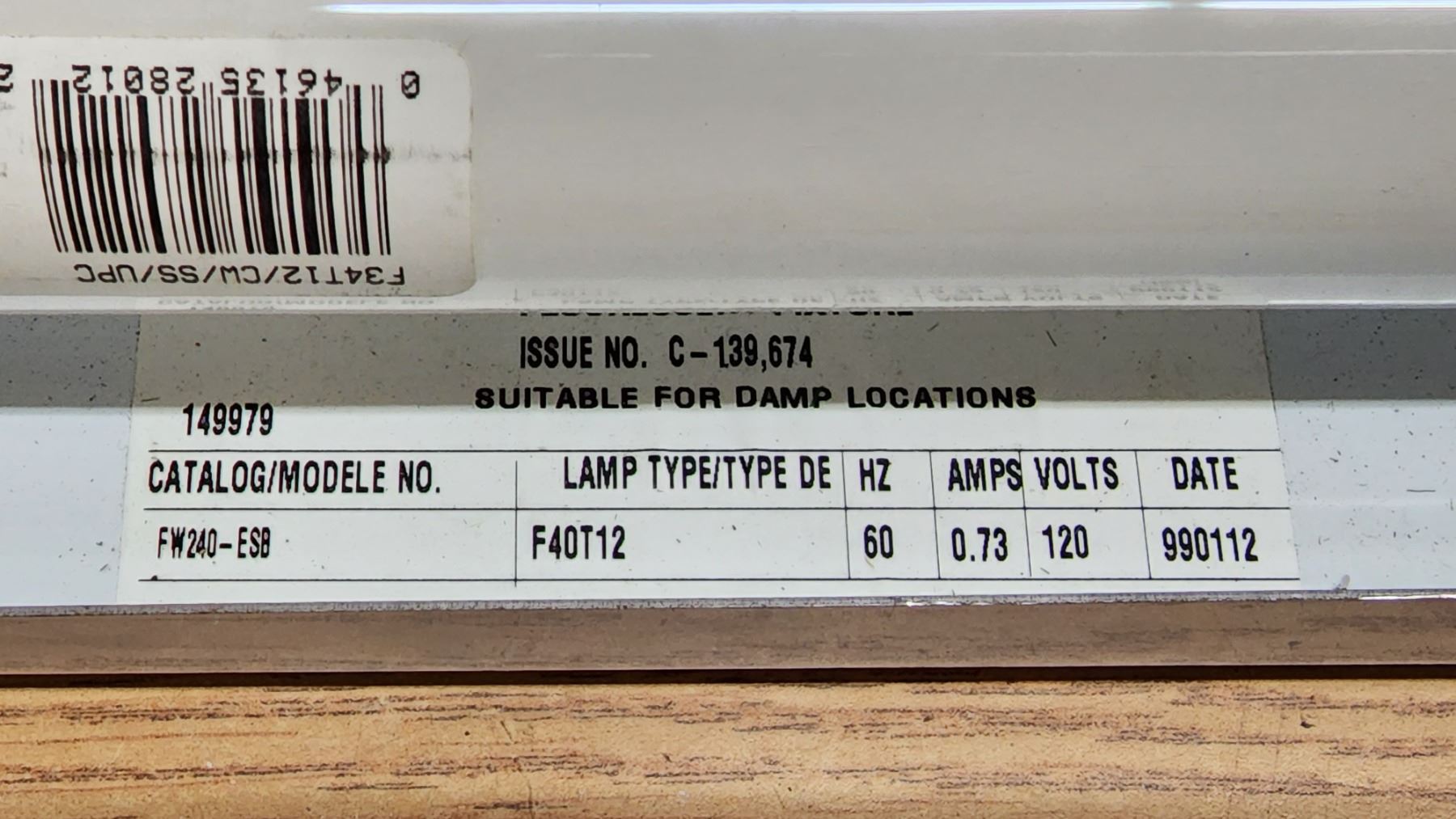 Florescent Light fixture - 4Ft long x 8" W x 3" D