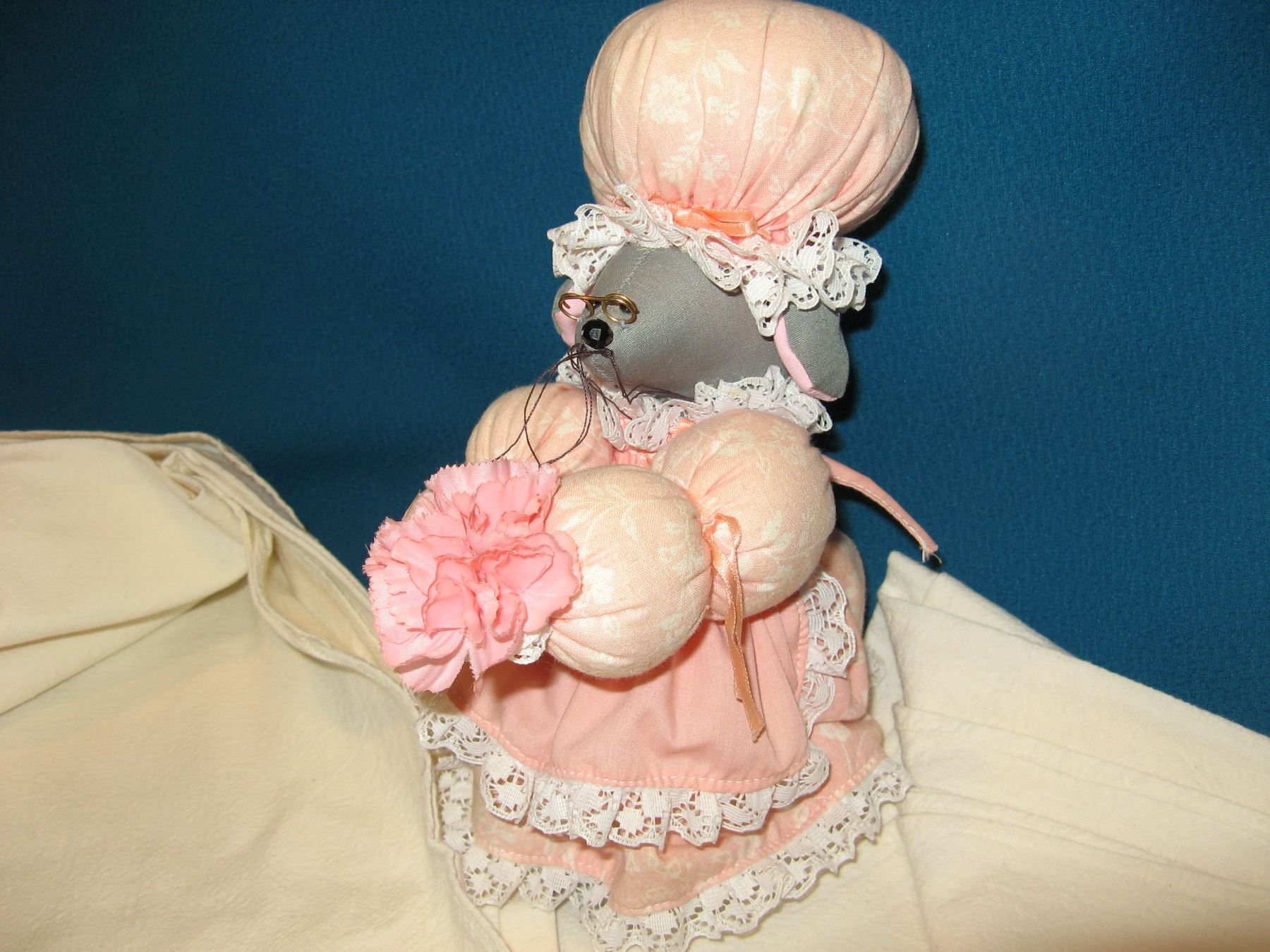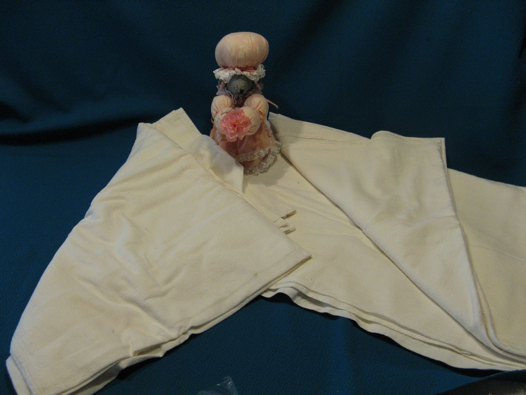 Flour Sacking Material & Pin Cushion Mouse. Pieces measure 65"x87" & 64"x88"