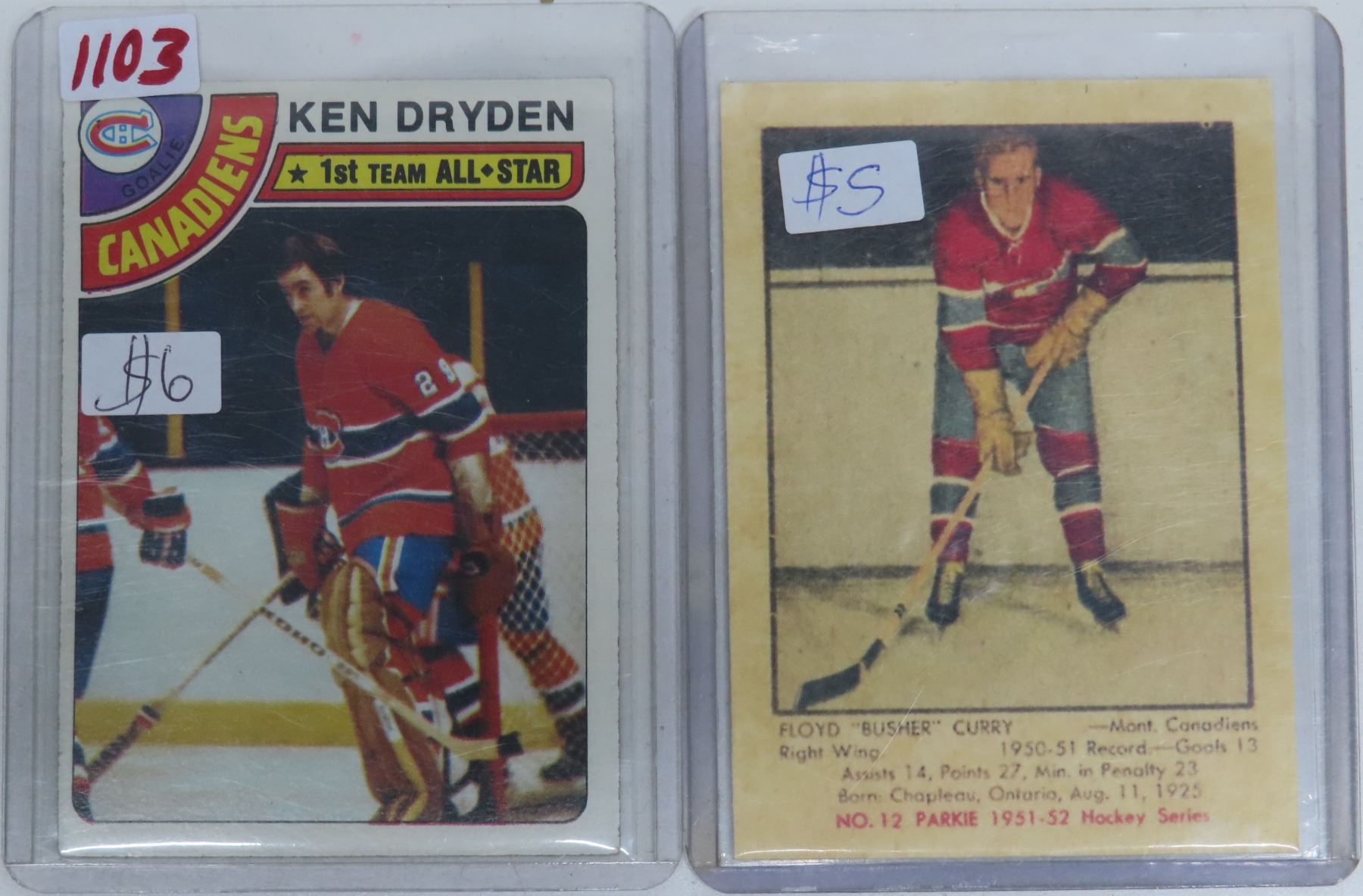 Floyd "Busher" Curry No. 12 PARKIE 1951-52 Hockey series & Ken Dryden 1st TEAM ALL STAR special Autograph Series - hockey cards