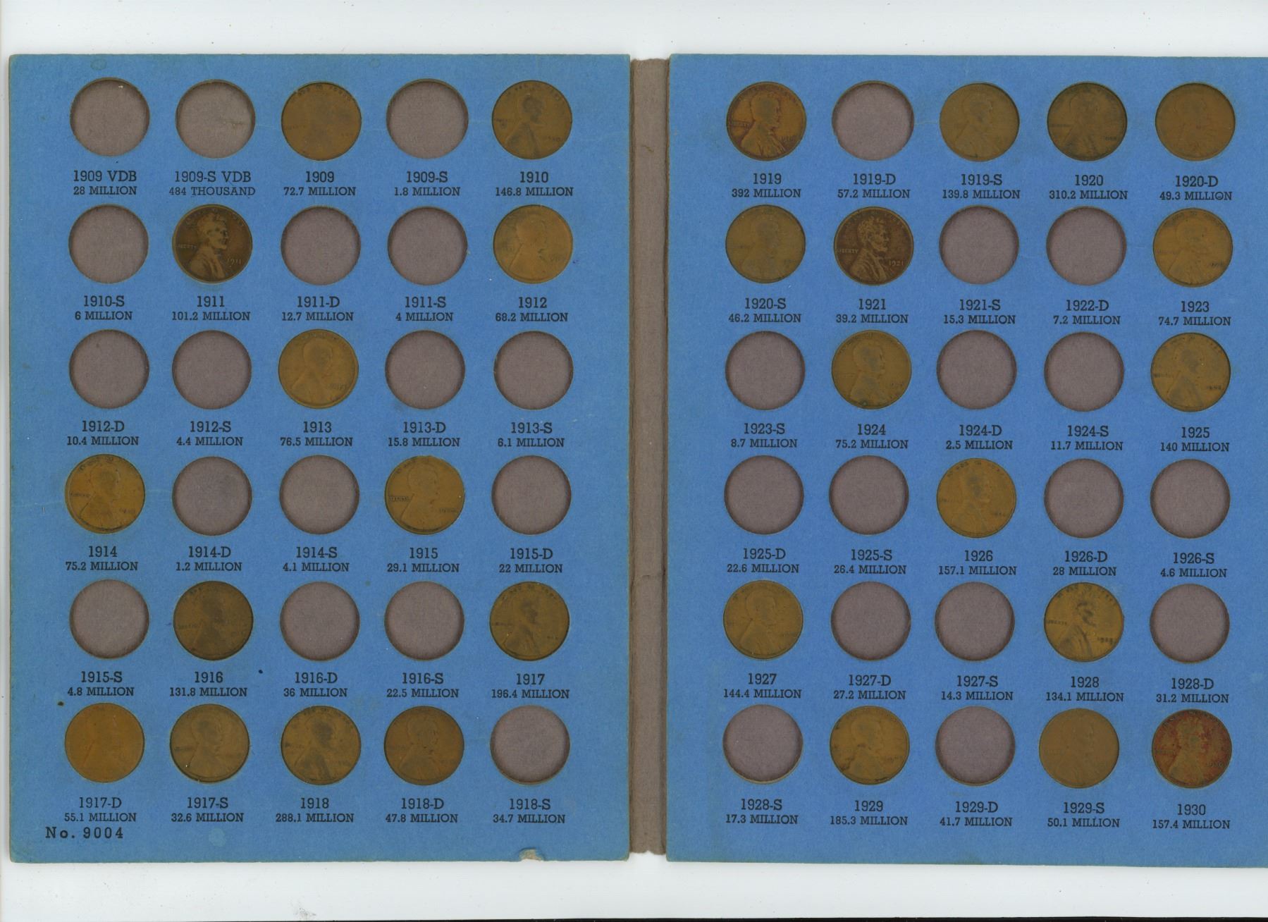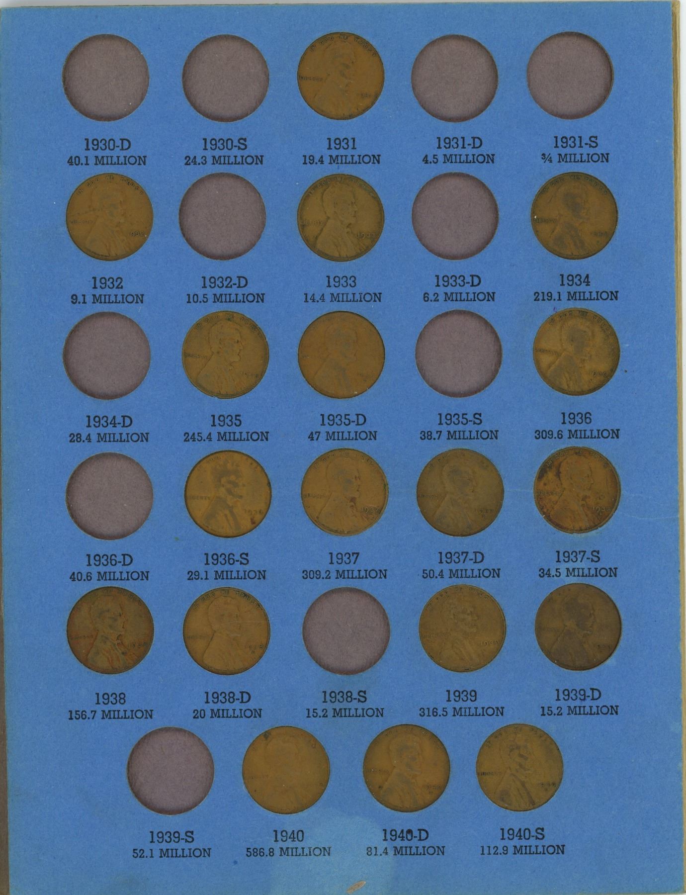 Folder of Lincoln head cent coins 1909-1940- 45 coins