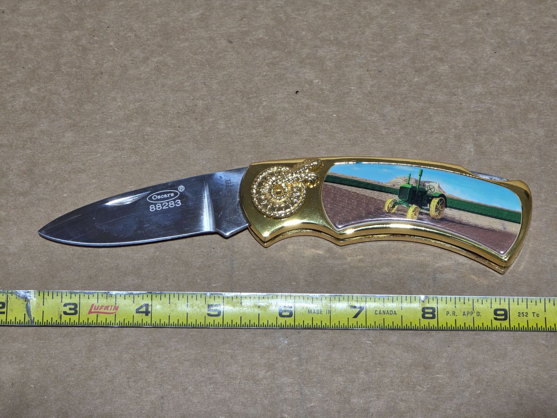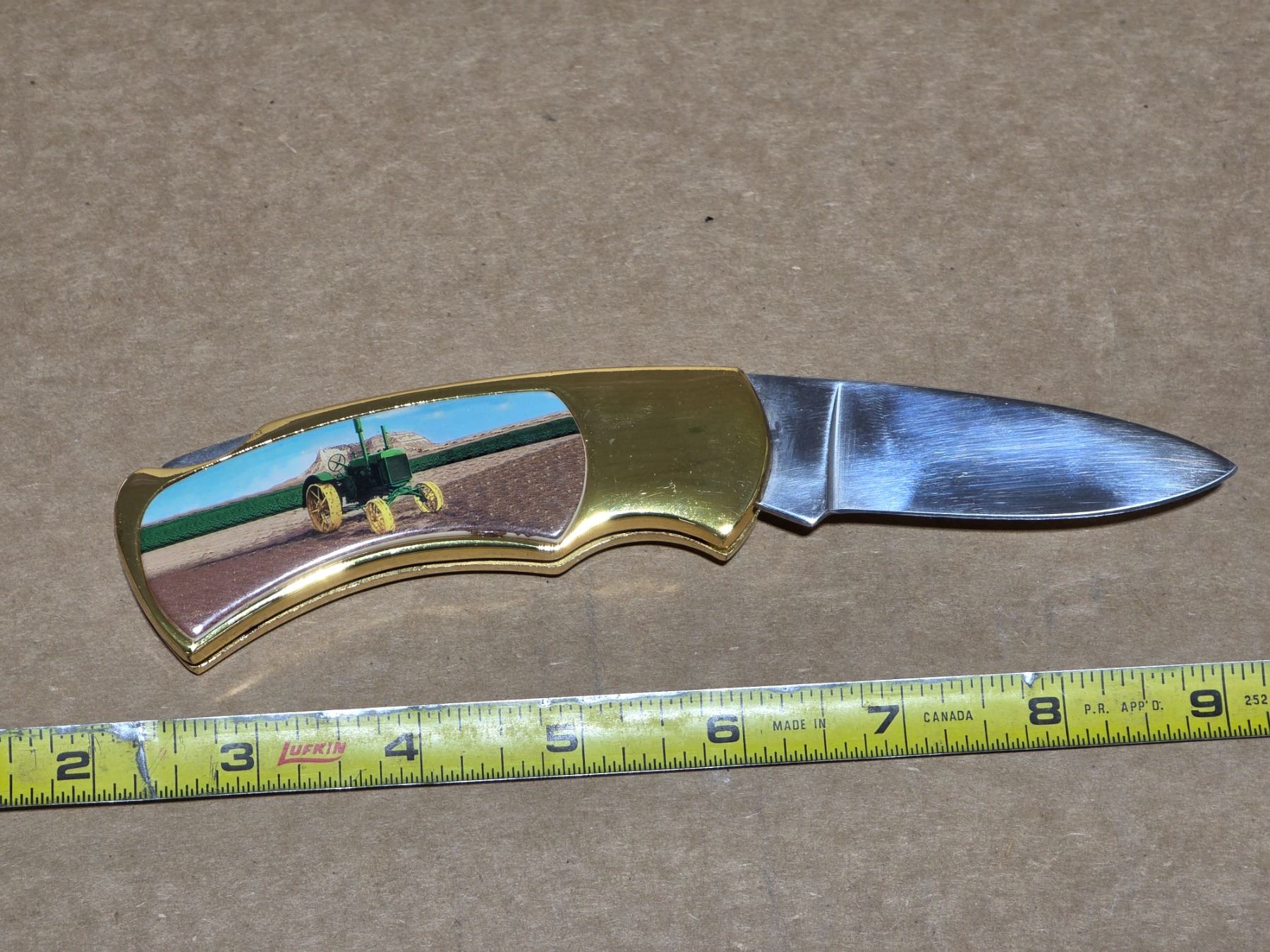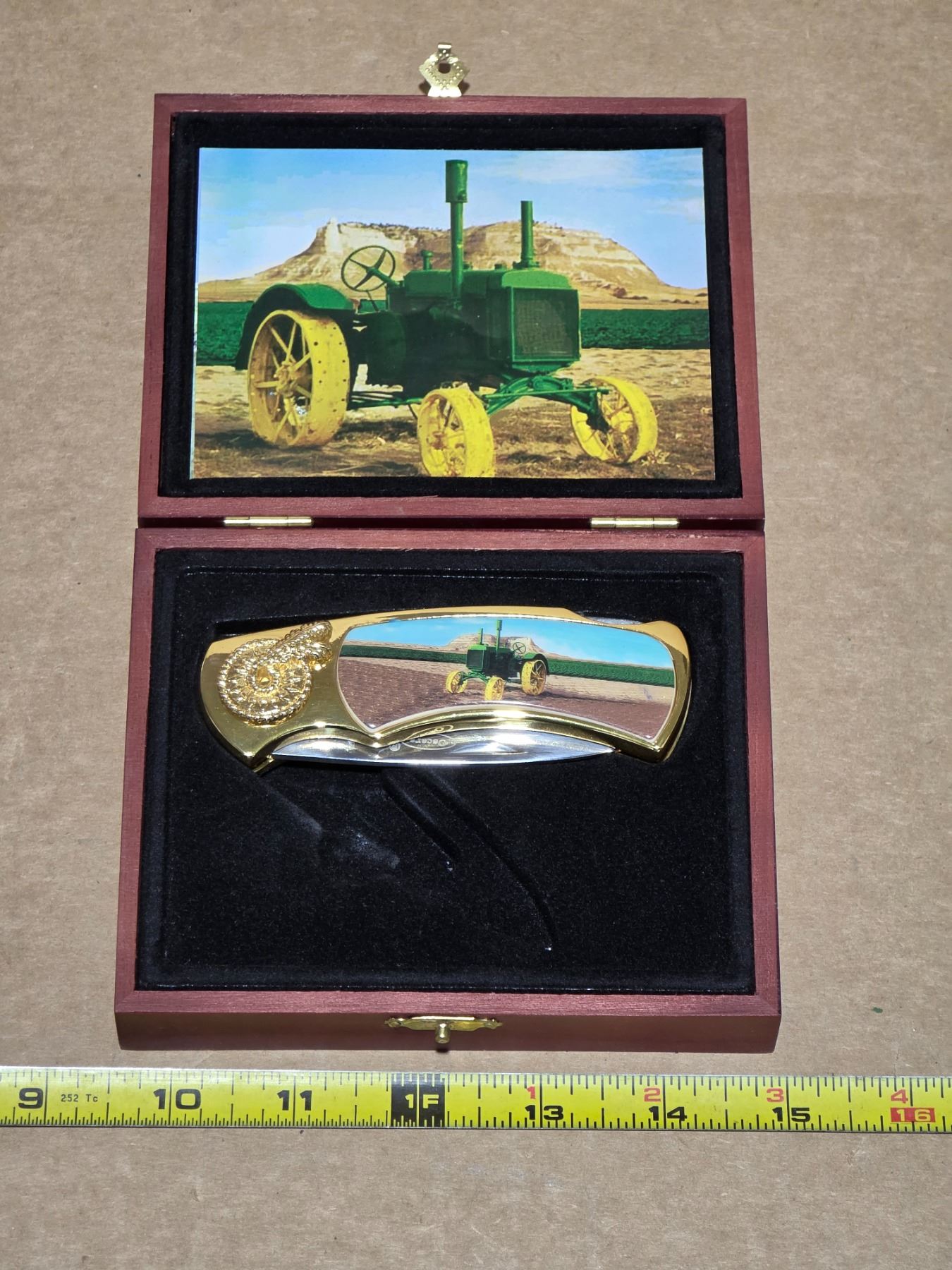 Folding knife with deer pictures and case