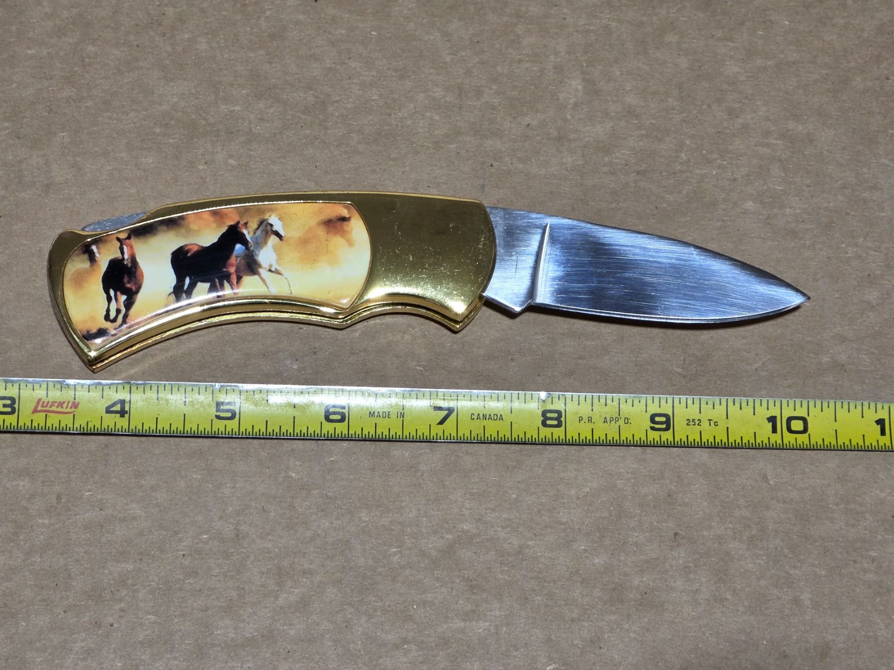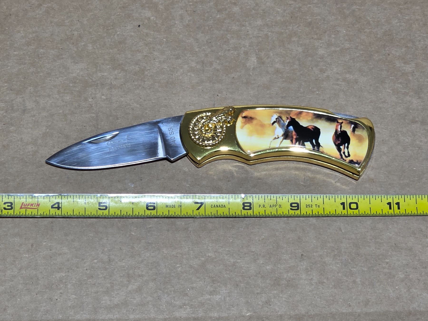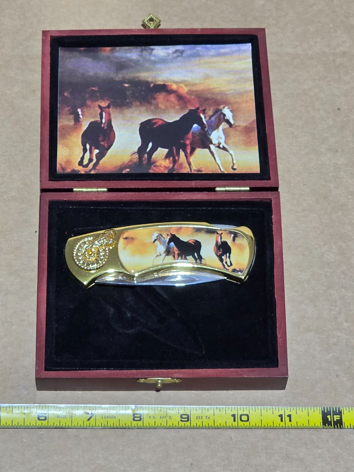 Folding knife with horse pictures and case